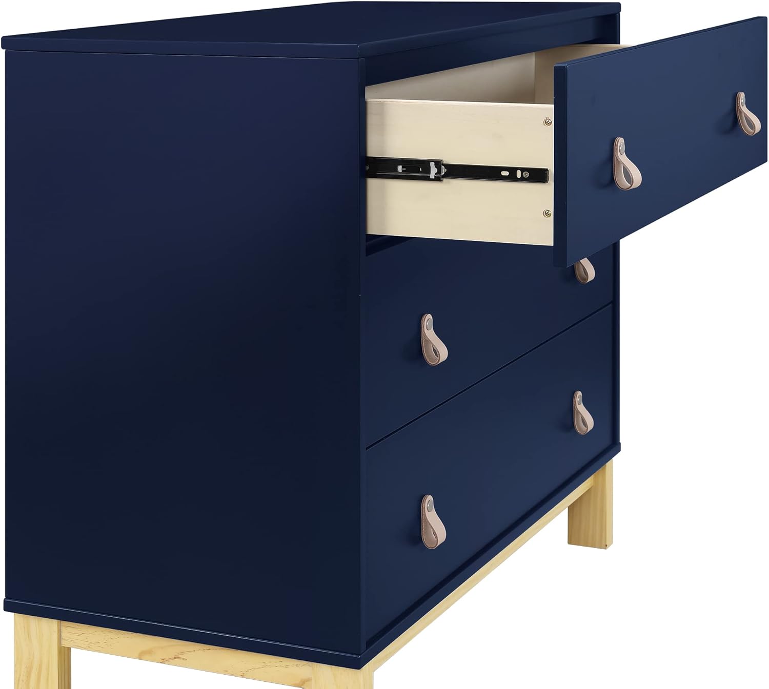 The babyGap Legacy 3 Drawer Dresser with Leather Pulls is a great addition to any nursery or kids’ bedroom. Crafted of sturdy, sustainable materials like New Zealand pine to give it plenty of longevity, this versatile dresser has three spacious drawers for plenty of storage and leather drawer pulls for a bit of fun. Plus, it’s GREENGUARD Gold Certified, which means it’s built to contribute to cleaner air for a healthy home. Available in Bianca White/Natural, Navy/Natural and Ebony/Natural. Easily mix, match, and layer with other items from the babyGap Furniture and Bedding Collection. Pair with the coordinating Changing Top #W173810 to convert the dresser into a convenient changing table (Changing Top and changing pad sold separately). All babyGap dressers are UL Stability Verified, tested to ASTM F2057 Furniture Safety Standard, the voluntary industry tip over standard for dressers. For your children's safety, only purchase dressers that comply with this standard. For additional security, babyGap strongly recommends that all dressers in your home be anchored; all babyGap dressers include a wall anchor. To learn how to properly secure your dresser, please see the product assembly instructions or visit our website.