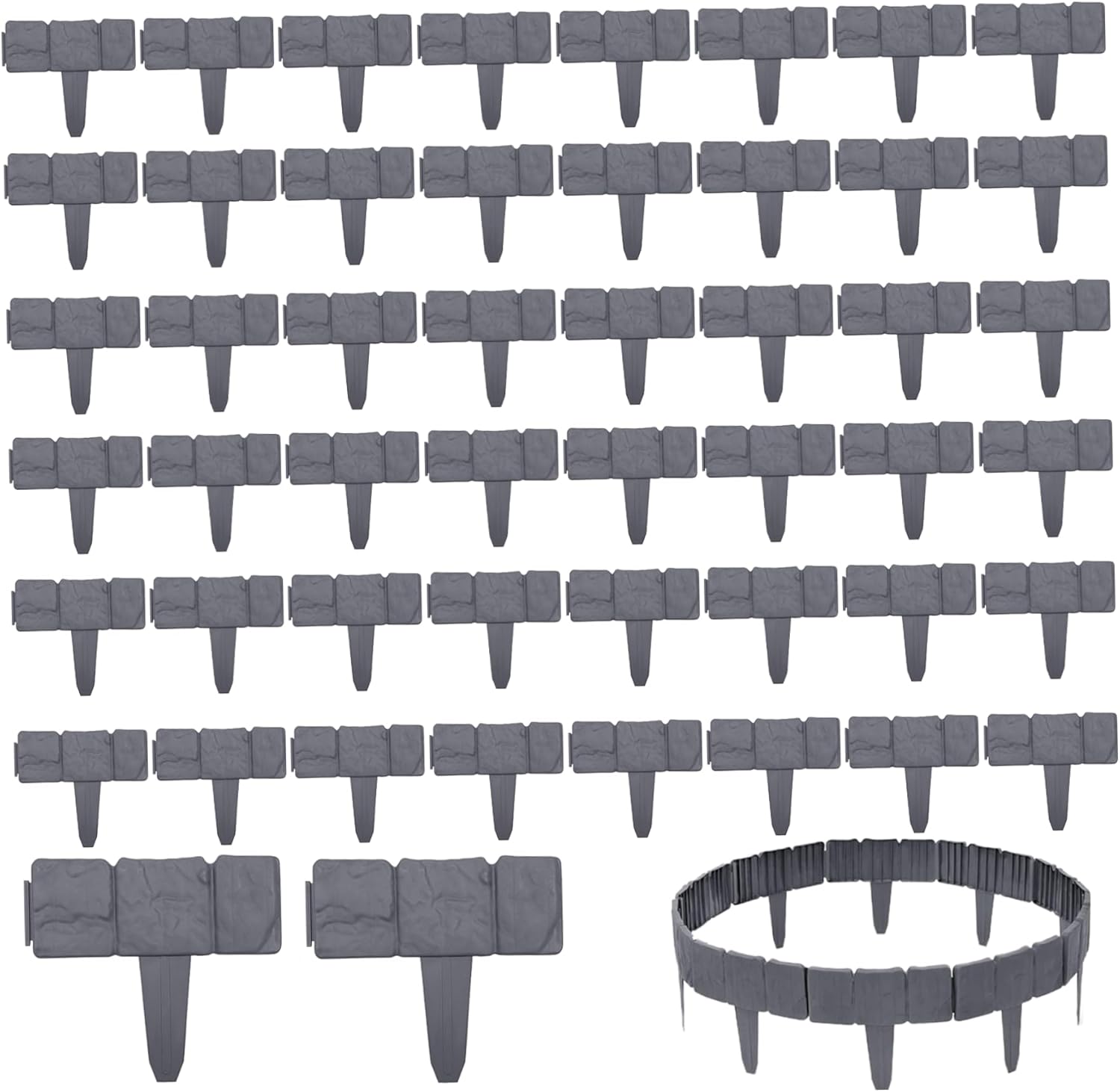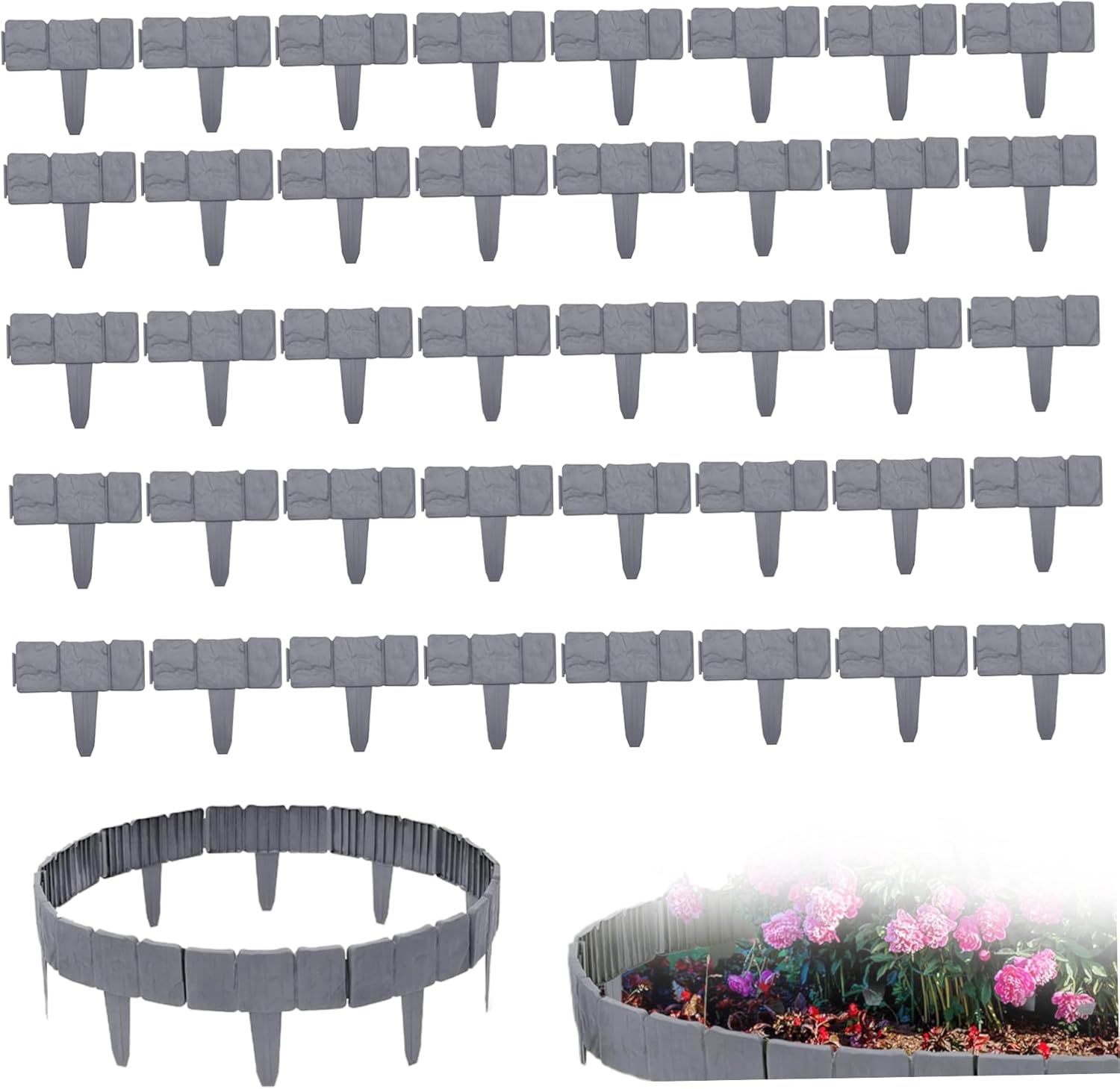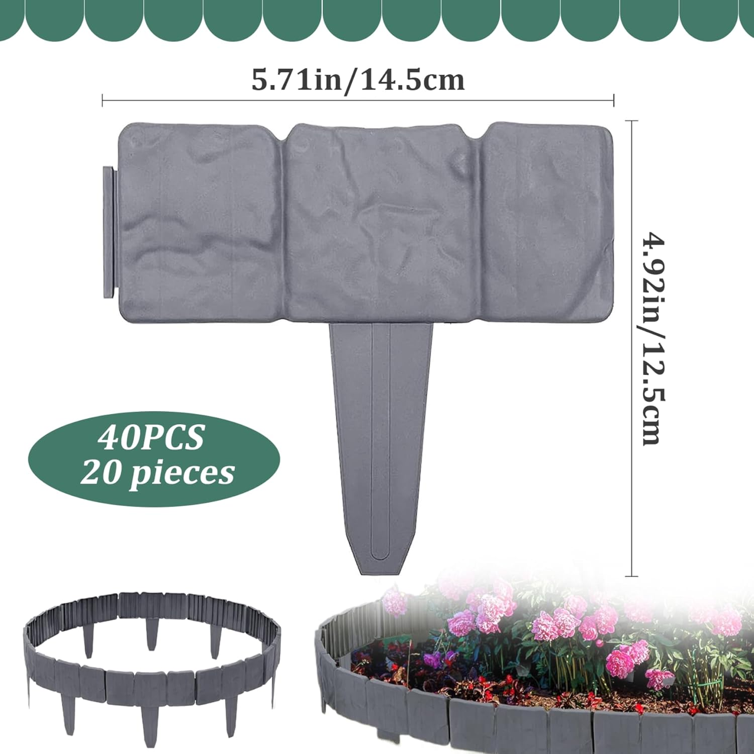 Garden Edging 5x6in PVC Grey Interlocking Decorative Stone 40Pcs Look Garden Edging Border DIY Landscape Border for Walkways, Yard, Flower Bed.