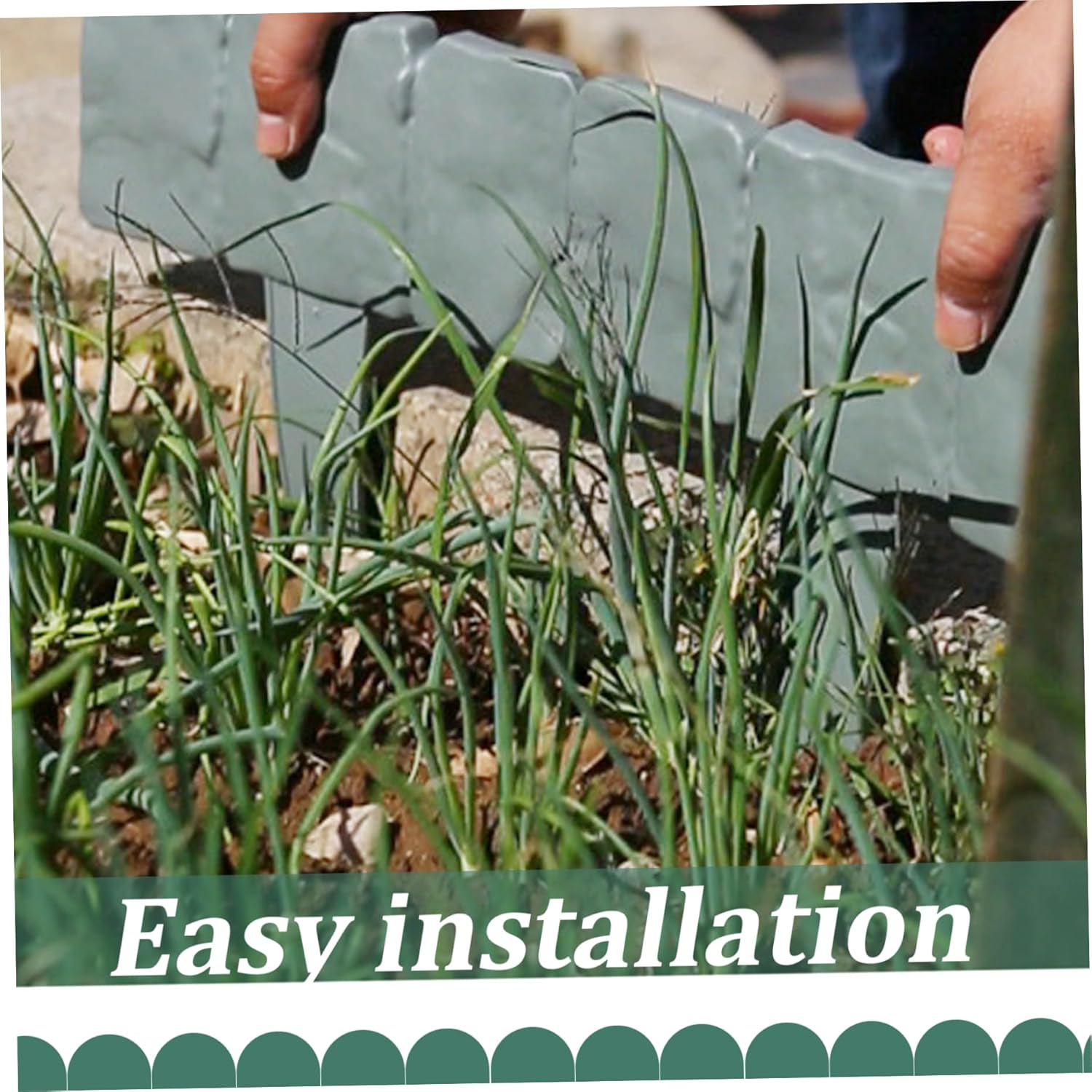 Description: The Plastic Garden Edging offers a blend of functionality and aesthetics for landscaping projects. Its ability to seamlessly integrate with lawn edges, resembling the appearance of stone, adds a touch of elegance to outdoor spaces. The high flexibility of the edging allows for easy customization, enabling users to create unique shapes and designs for their gardens. Built to withstand various weather conditions, the edging is corrosion-resistant, and environmentally friendly. Installation is a breeze with the embedded design and interlocking features that facilitate easy connection between edging pieces. Whether used to define boundaries in gardens, pathways, or patios, the plastic garden edging serves as a versatile solution for enhancing the visual appeal and organization of outdoor spaces. Features:. Plastic Garden Edging. -Color: Grey. -Material: PVC. -Size: About 14.5X12.5cm/5.7x4.92inches. Note: Manual measurement, please allow slight errors on size. The colors may exist slight difference due to different screens. Package Including 40 Pieces Plastic Garden Edgings