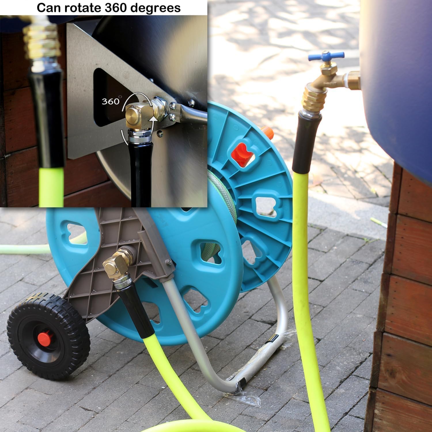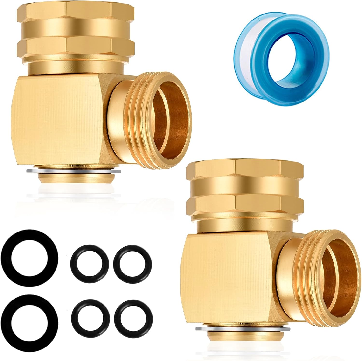 Right angle swivel elbow connector, GHT internal and external threads solid brass, 360 degree swivel adjustment
