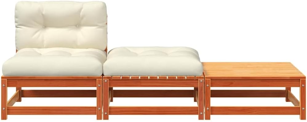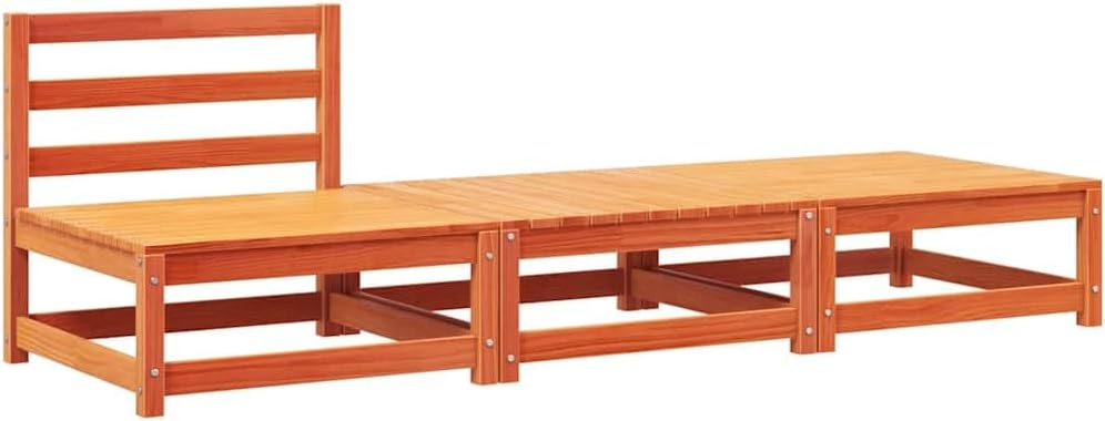 This garden sofa is the ideal addition to any outdoor space, blending style with function to create a lovely seating area on your balcony, garden, or terrace. With its modular design, the sofa can easily be arranged to suit your needs while offering rustic charm with its warm brown pine finish and comfy seating for up to three.Modular Configurations: Easily change up your seating arrangement, perfect for gatherings or just kicking back.Soft Cushions: Each seating pad is filled with PP cotton and wrapped in durable Oxford fabric, ensuring comfort for long periods.Sturdy Construction: Made from solid pine wood, this sofa blends style with durability, ready for any weather.Stylish Design: Rustic looks that fit seamlessly with various outdoor styles, giving you a snuggly spot for any occasion.Easy Maintenance: Just wipe down with a damp cloth to keep it looking fresh for years. Color: Brown Shape: RectangularMaterial: Wood Solid Pine woodFinish: Stained Indoor/Outdoor: Indoor / OutdoorCover Included: NoRoom: Garden and terraceMaximum Number of People: 3Maximum Weit: 726 lbsDimensions: 27.6 x 82.7 x 26.4 in (W x L x H)Surface Height: 11.8 inWeight: 60.85 lbsSeat Depth: 25 inSeating Capacity: 3Swings: NoDelivery Contains: 1 x Armless sofaAssembly Required: YesRecommended Number of People for Assembly: 2