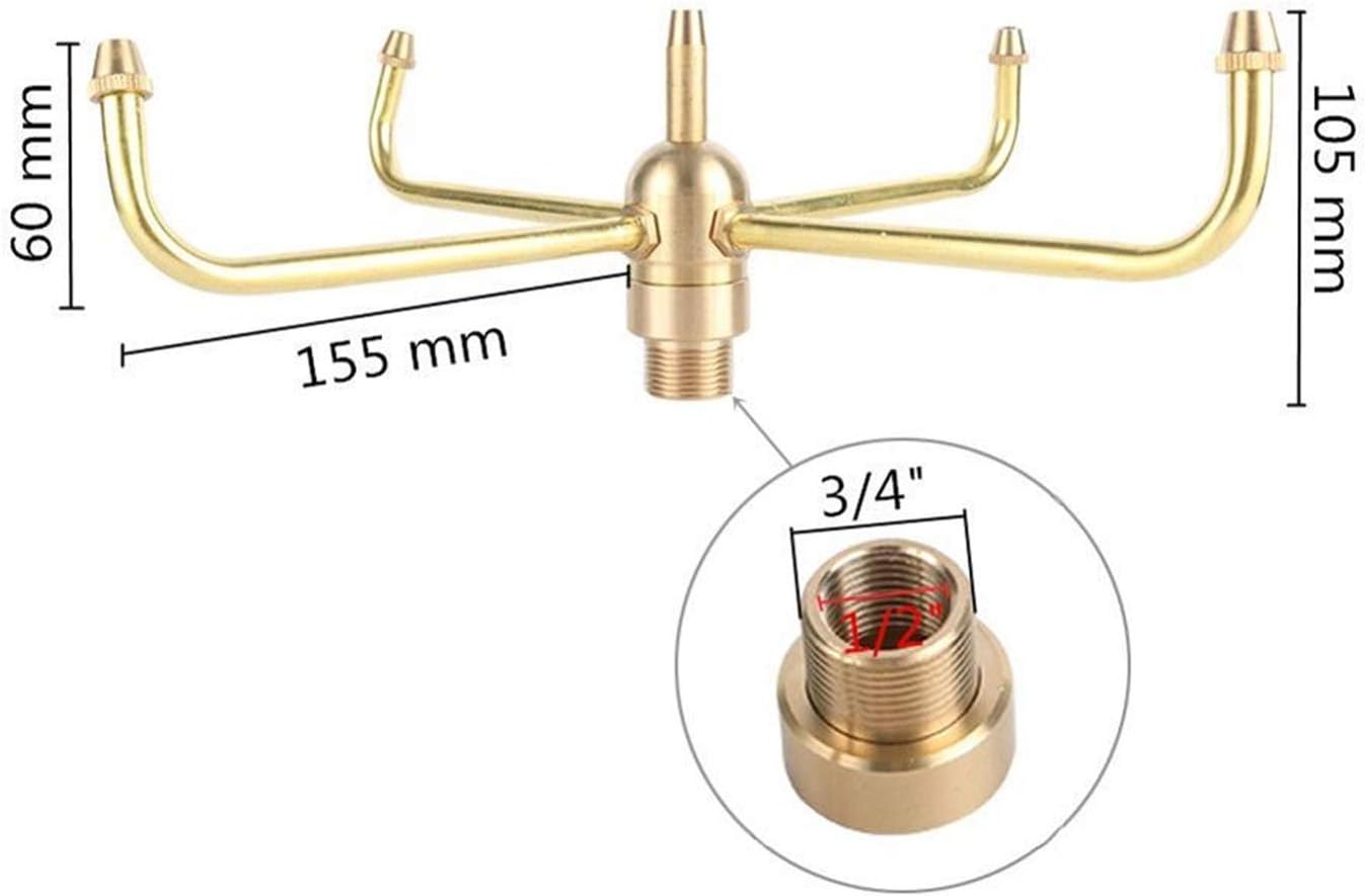 It is very suitable for agriculture, lawns, gardens, courtyards, greenhouses, flower beds, swimming pools, etc.Material: brass nozzle, aluminum pipeSize: 1/2" internal thread, 3/4" internal threadColor: brassPressure: 40Kpa-80KpaWater volume: 2.2-4.5 cubic meters/hourCoverage range: 0.5-1.5mShooting height: 1.5m-3mCovering diameter: 0.5-1.5mThe package includes:1 piece x rotating decorative fountainDescription:The branch pipe of the rotating nozzle should be partially or completely inclined at a certain angle relative to the horizontal plane, and the horizontal plane can also be horizontal.The branch nozzle is the same clockwise or counterclockwise, as long as the water pressure is sufficient, the branch nozzle can be rotated.noteThis is a manual measurement, and there may be an error of 1-2mm.Due to the differences between different monitors, the picture may not reflect the actual color of the item. Thank you.