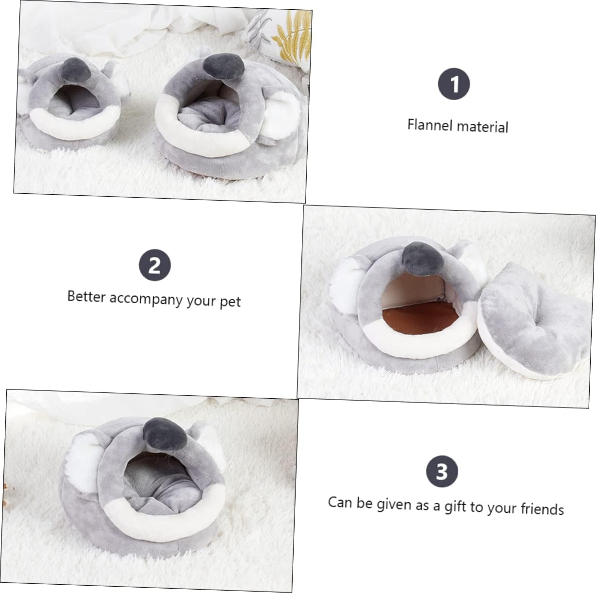 Package Include 1 x pet nest Features - Size S: About 19.00X19.00X13.00 cm/7.47X7.47X5.11 inch hamster warm nest. - Material: Flannel, PP cotton hamster winter bed. - Color: Grey Cartoon Hamster Bed. - Size XL: About 28.00X30.00X20.00 cm/11.00X11.79X7.86 inch Small Pet Nest. - Size L: About 25.00X25.00X16.00 cm/9.82X9.82X6.29 inch Pet Nest. - and , comfortable and , your pets will like it Guinea Pigs House Cave. - Lovely design, suitable for small animals to rest, sleep, play, stay warm in the cold winter Hamster House. - Made of material, , and for small pets pet bed. - Compact and light weight, easy to move and use, very convenient and Small Pets Beds. - Lovely shaped design can attract your adorable small pet's attention hamster sleeping bed.Goods DescriptionHamster House The small pet bed will turn your pet's cage into a cozy home.Small Pets Beds Made of material, and for small pets.Small Pet Nest It is the small pets sleeping nest, especially in cold weather, warm and comfortable.Small Pets Cave House This is a hamster small pet nest.hamster winter bed A present choice for your friends or families who haves small pets