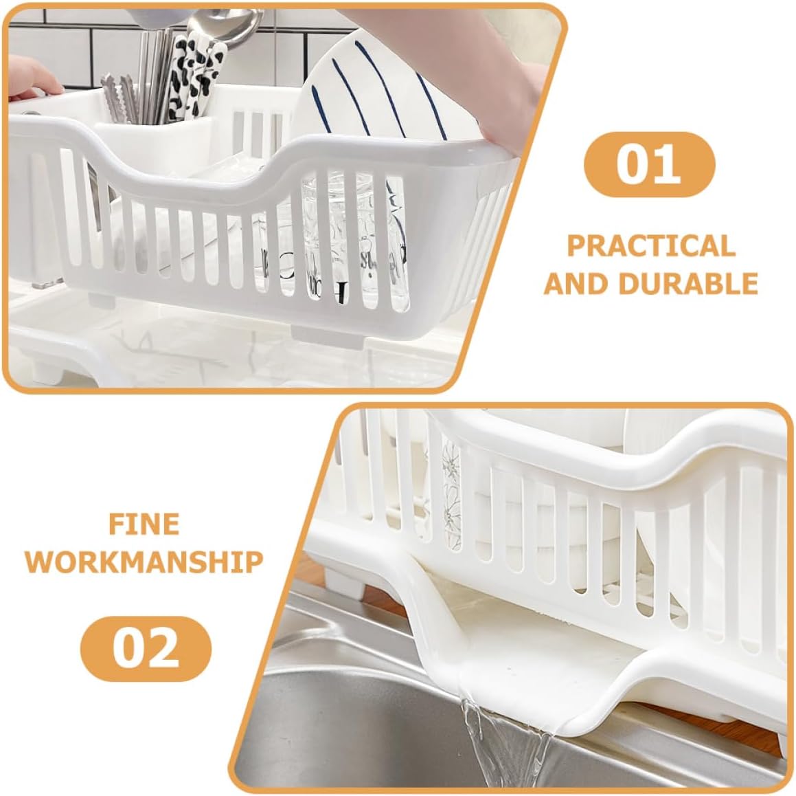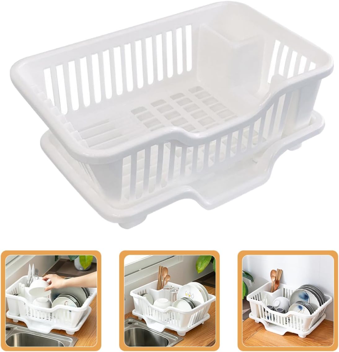 Package Include 1 x dish drying rack Features -Material:PP plastic organizer -Size:44.50X27.50X18.00cm/17.49X10.81X7.07in plastic storage shelves -Color:White countertop utensil holder - Easy and convenient to use Kitchen storage rack, it can be used as a housewarming to your friends dish rack for sink. - Made of high-grade material, , creative and practical, you can use it with confidence kitchen storage rack. - Designed with feature of draining, it will make your kitchen life more convenient, which is very useful dish rack for kitchen. - Creative drip tray design, water can be directly guided into the sink, preventing water accumulation kitchen dish rack. - The Dish Rack with compact design takes up little space, convenient and practical, easy to be installed water filter for sink.Goods Descriptiondish drainer plates holder , which is convenient to use.sink basket strainer This kitchen utensil rack can keep things neat and tidy on the cabinets or workbenches.dish draining rack The Dish Drying Rack is suitable for storing and draining bowls, plates, chopsticks, etc. dish This Dish Drying Rack is made of , beautiful appearance and fine workmanship