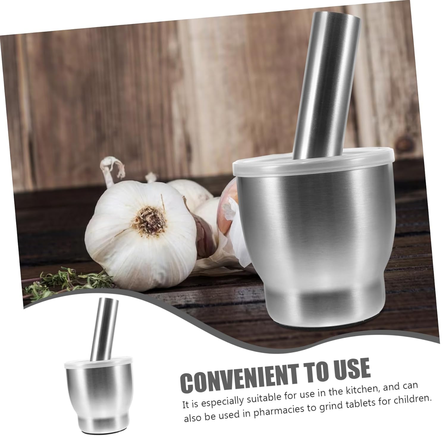 Garneck Stainless Steel Garlic Masher with Pp Lid Mortar and Pestle Kitchen Grinding Tool for Spices Herbs and Medicines Easy to Use for Home Cooking