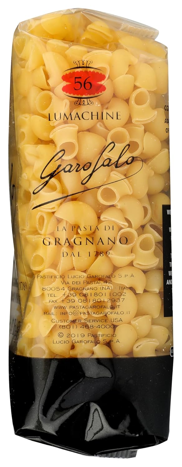 Vegan. Internationa V-Label.org Non-GMO Project verified. nongmoproject.org. Macaroni product. Cooking 7 time. We have made our pasta for over 200 years. We believe that every pasta shape has its own personality: Type of mold, drying time and temperature. We choose slow drying and at low temperatures to achieve a unique flavor and a remarkable taste. www.Pastagarofalo.it. Customer Services USA: 801-468-4000. Product of Italy.
