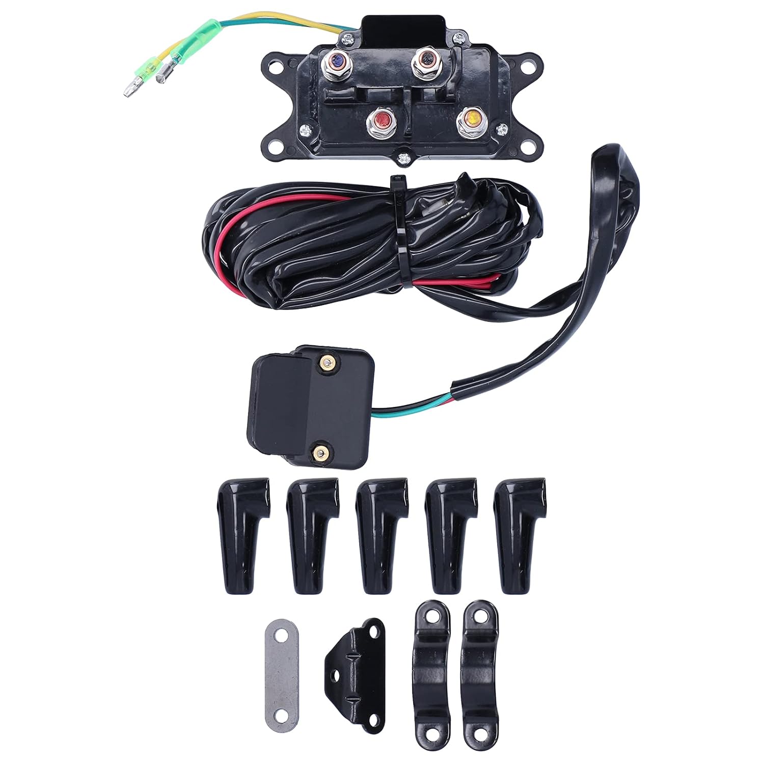 Spec: Item Type: Winch Solenoid Relay Material: ABS, Brass, Alloy Application: Suitable for ATV, UTV, boat trailer and other applications Voltage: 12V Maximum Current: 250A Capacity: 3500-4500LBS Input and Output Terminal Size: M8 Package List: 1 x Relay 1 x Cable 6 x Protector Cover 4 x Mounting Bracket 2 x Screw Notice: Before starting, disconnect the vehicle earth wire and positive electrode from the battery. Do not attempt to install a wire when connecting the battery. Dangerous or flammable substances may release or ignite serious injuries.Wear goggles and remove all metal jewelry. Do not tilt the battery when connected.