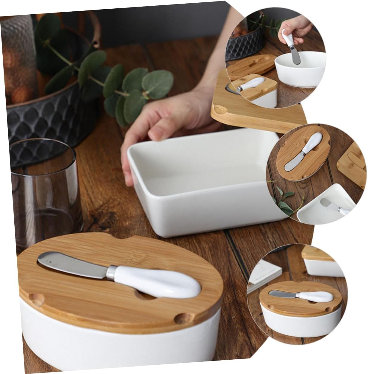 Package Include 1 x Cutter 1 1 x Lid Characteristics -Product Info:Butter knife ceramic disc set -Size:17.40X12.00X7.40cm/6.84X4.72X2.91in -Material:Ceramic, -Color:Multi - This classic design is elegant enough for any dinner table and is suitable for everyday use butter holder with lid. - workmanship and good materials a and perfect details. - The lid helps to hold the butter stick or cheese fresh in the refrigerator, without absorbing the odor of other foods ceramic butter jar. - This practical butter pan with a lid can keep the butter fresh, spreadable and delicious for longer butter storage. - Our Butter Storage Box is made of fine material, with smooth edges, thick and .Goods Informationbutter box. Great for household.butter preservation dish With decor, add luxury and chic atmosphere.butter storage container Selection of good material, safe use, stylish and creative.ceramic butter jar This item a Butter Box with Slicer which is manufactured with material, classic and delicate
