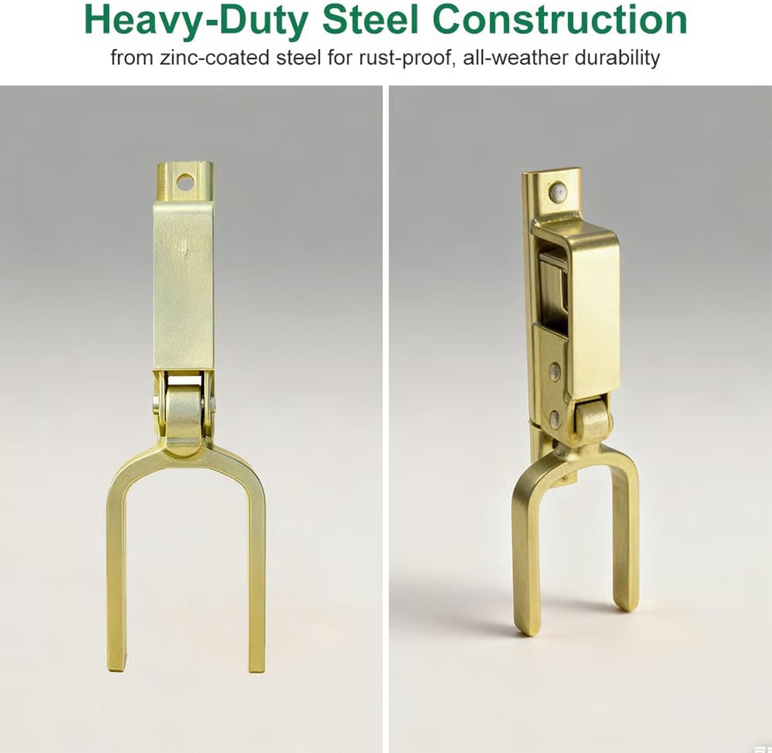 Fast, Secure One-Hand Gate Locking—This instant locking gate latch gives you fast one-hand operation—simply lift and drop to open or close. The automatic spring lock activates the moment the gate shuts, making it a reliable self locking gate latch for farm gate, livestock gate latch systems, backyard fence gates, and outdoor access points. Ideal when carrying feed buckets, tools, or managing animals, and functions as a fast gate latch that prevents accidental openings.Heavy-Duty Outdoor Gate Durability—Built from rust-resistant steel with zinc-coated protection, this heavy duty gate latch stands up to rain, mud, sun exposure, and seasonal weather changes. Its reinforced structure makes it an ideal locking gate latch for cattle gates, metal gates, and high-traffic farm gate areas. Whether used for farm & ranch environments or backyard fences, this black gate latch maintains long-term strength and reliability.Versatile & Easy Installation Across Gate Types—Engineered for universal mounting, this latch installs easily on wood gates, vinyl gates, and gate latches for metal gates using basic tools. Works with pipe-style frames, colonial gate hinge and latch setups, backyard fence gate latch systems, and perimeter gate latch kit applications. From heavy duty farm gate latch needs to simple residential enclosure use, this design delivers best-in-class stability, easy install gates latchs functionality, and dependable everyday performance.