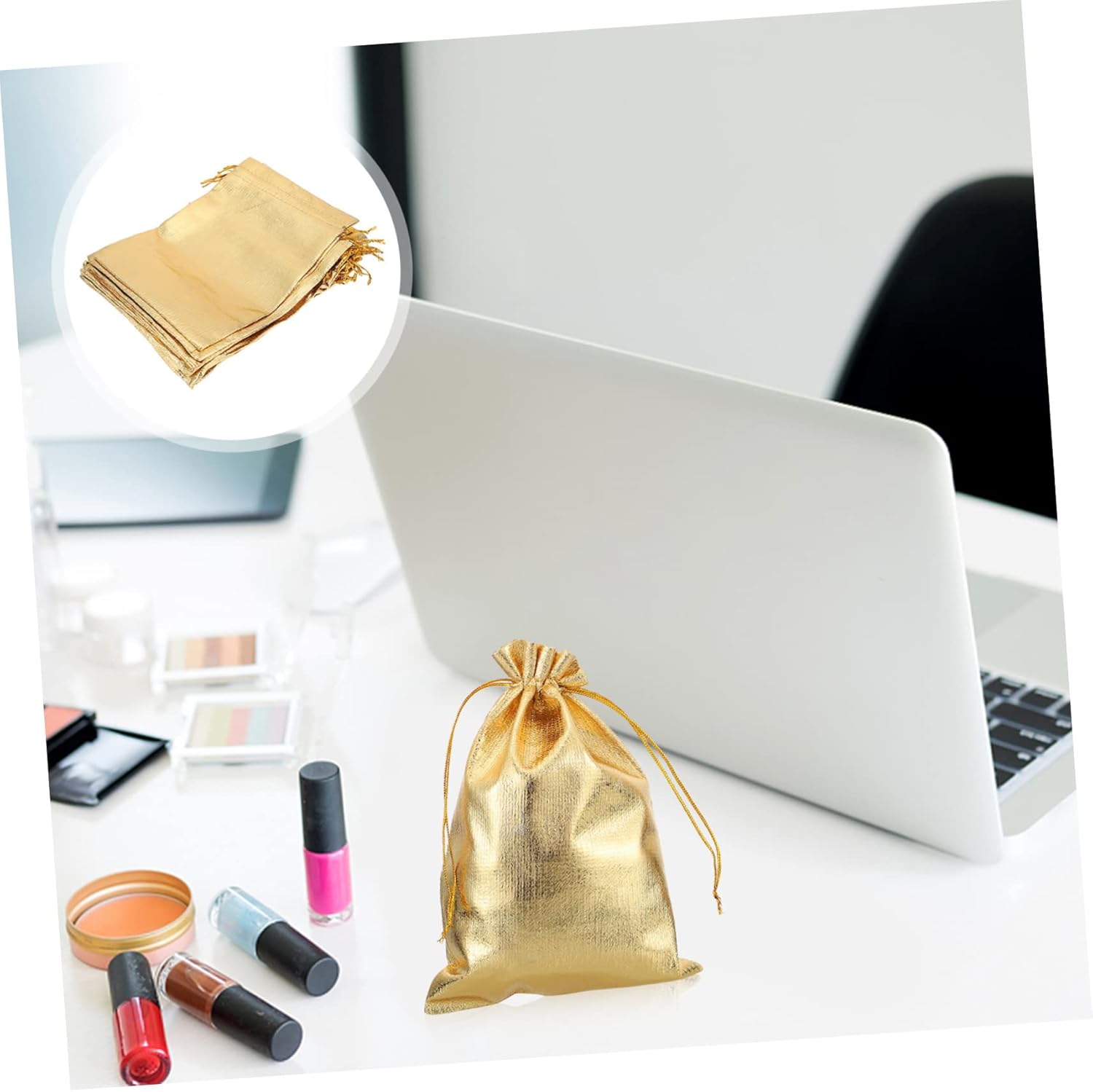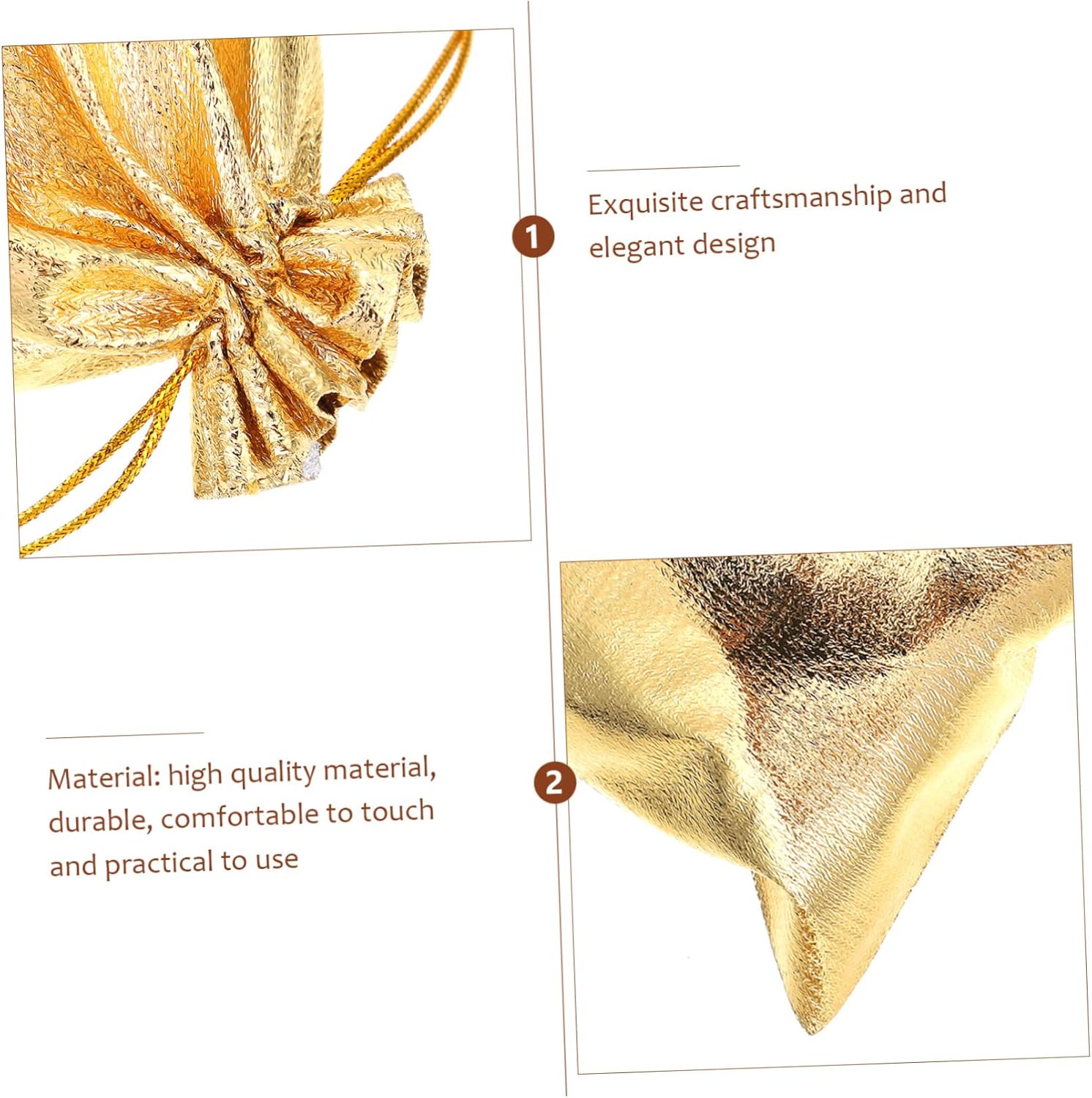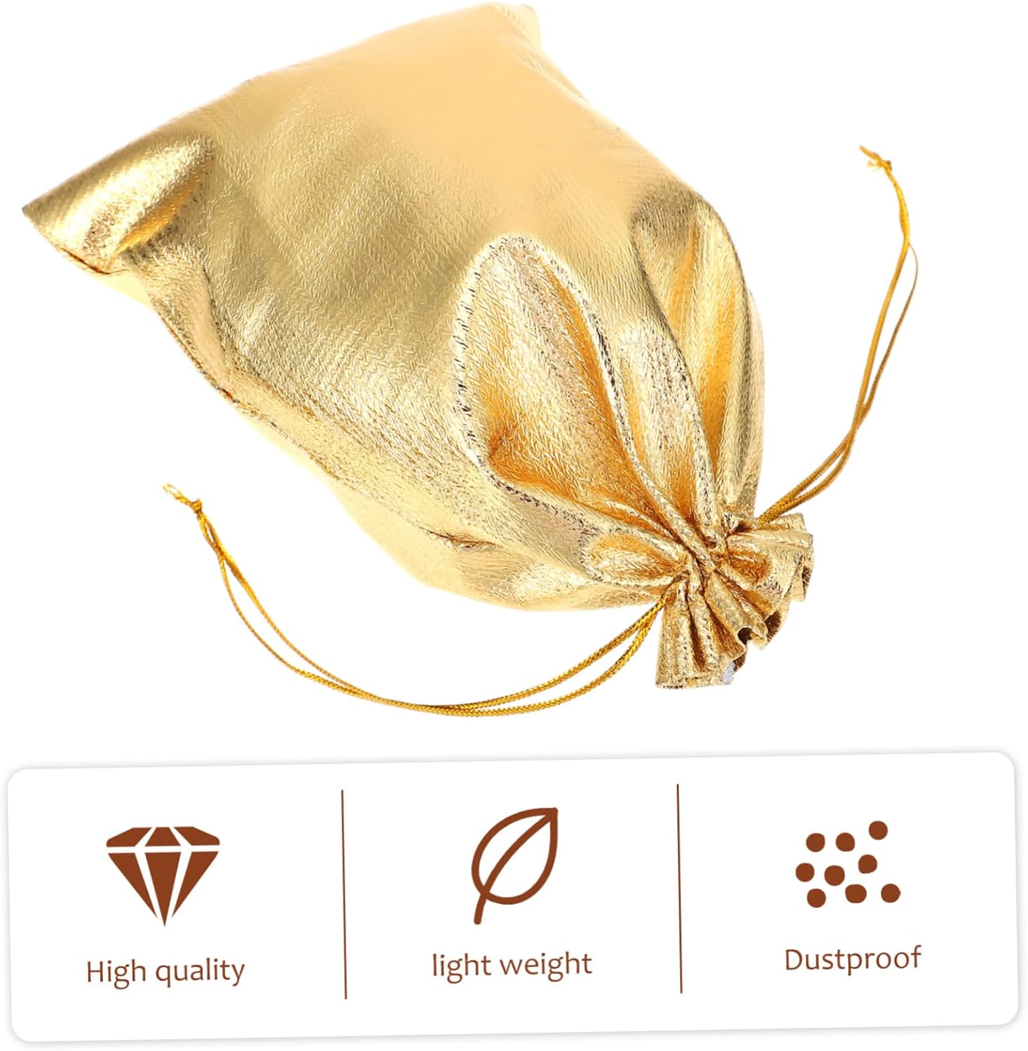 Package Include 150 x drawstring bags Characteristics - Size: About 18.00X13.00X0.10cm/ 7.07X5.11X0.04inch Small Bag. - Color: Golden Packing Bag. - Material: Hot-stamping cloth Drawstring Pouch. - These pouches are suitable for many occasions, such as weddings or parties Wedding Candy Bag. - Fine workmanship and make ensure its popularity Jewelry Bag. - Bags come with drawstrings which make the bags easy to close, open and avoid object lost Cloth Drawstring Bag. - material and fine craftsmanship, sturdy and durable for a long time Storage Pouch. - Widely used, can pack more things. Suitable for party packaging candy, small , cards, etc Small Storage Bag.Goods Information Bag Do you want to find some storage bags to hold candy, jewelry or ? Our drawstring bag can hold , candy, jewelry, cosmetic and more.Jewelry Pouch They are the choices for you.Drawstring Storage Bag They are convenient to store small items and easy to access