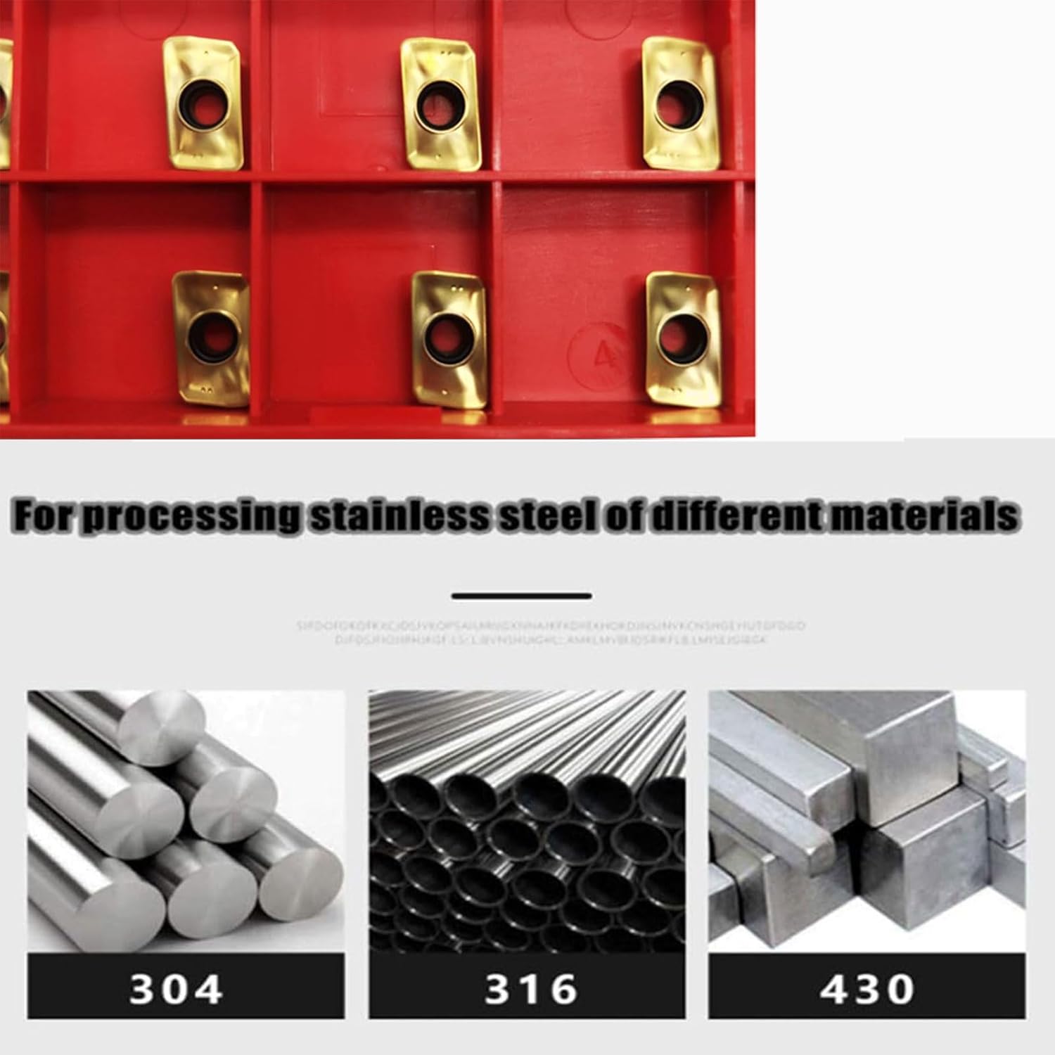 30pcs milling inserts, used to face milling,slotting,should milling ,slope cutting, spiral machining and drilling; Balzers coating, Carbide substrate, Suitable for finishing and semi-finishing of various steel, stainless iron and cast iron workpieces, such as 45# steel, Spring steel, H13 steel ,42Cr steel,hard steel parts (eg. 4140 alloy steel )