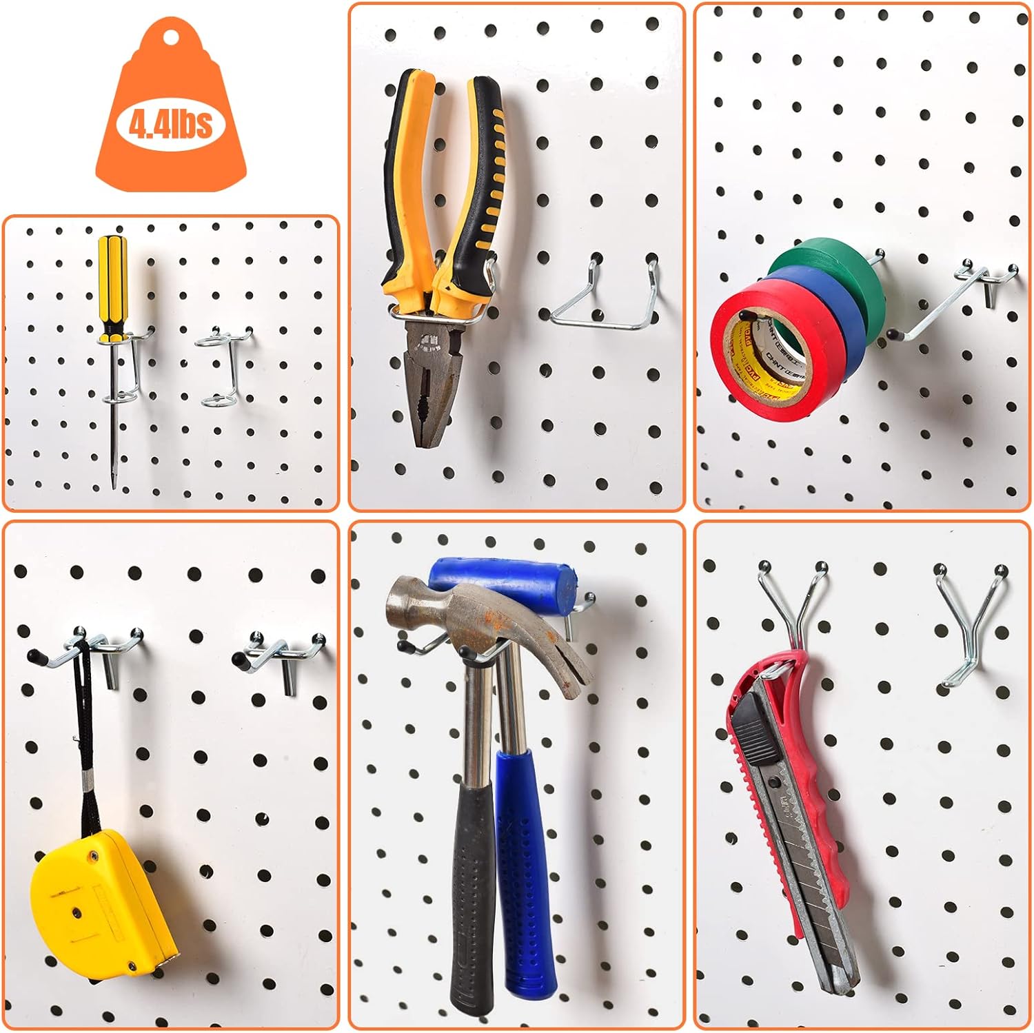 High Compatibility: Fit all metal, wooden or plastic pegboards with 1/8" and 1/4" hole diameter with 1“ spaced holes