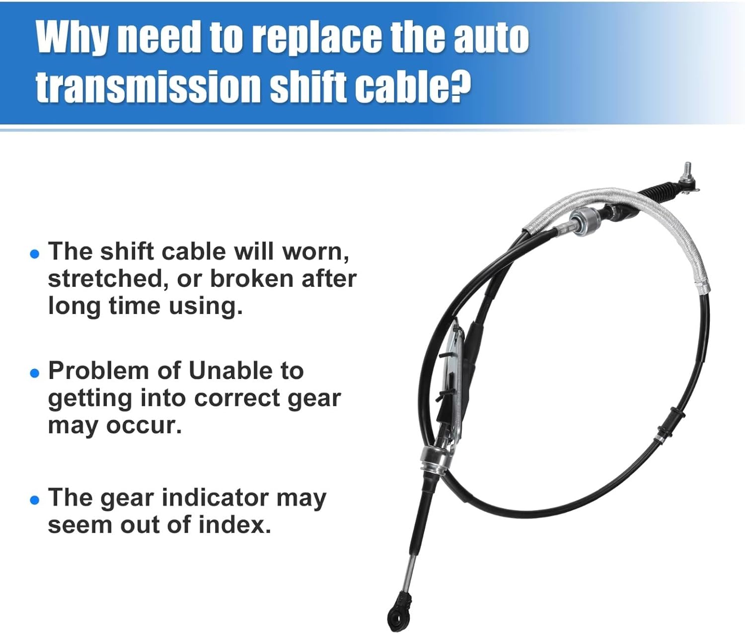 Every product undergoes durability and compatibility testing. For any questions or assistance, we offer standard after-sales service to ensure a pleasant shopping experience.Specification:Product name: Car Shift CablePart Number:3382048060/33820-48060Length: 178cm / 70.08"(Approximately)Thread Size: M8x1.25Color: Black, Silver TonePackage Included:1 x Car Gear Selector Cable"