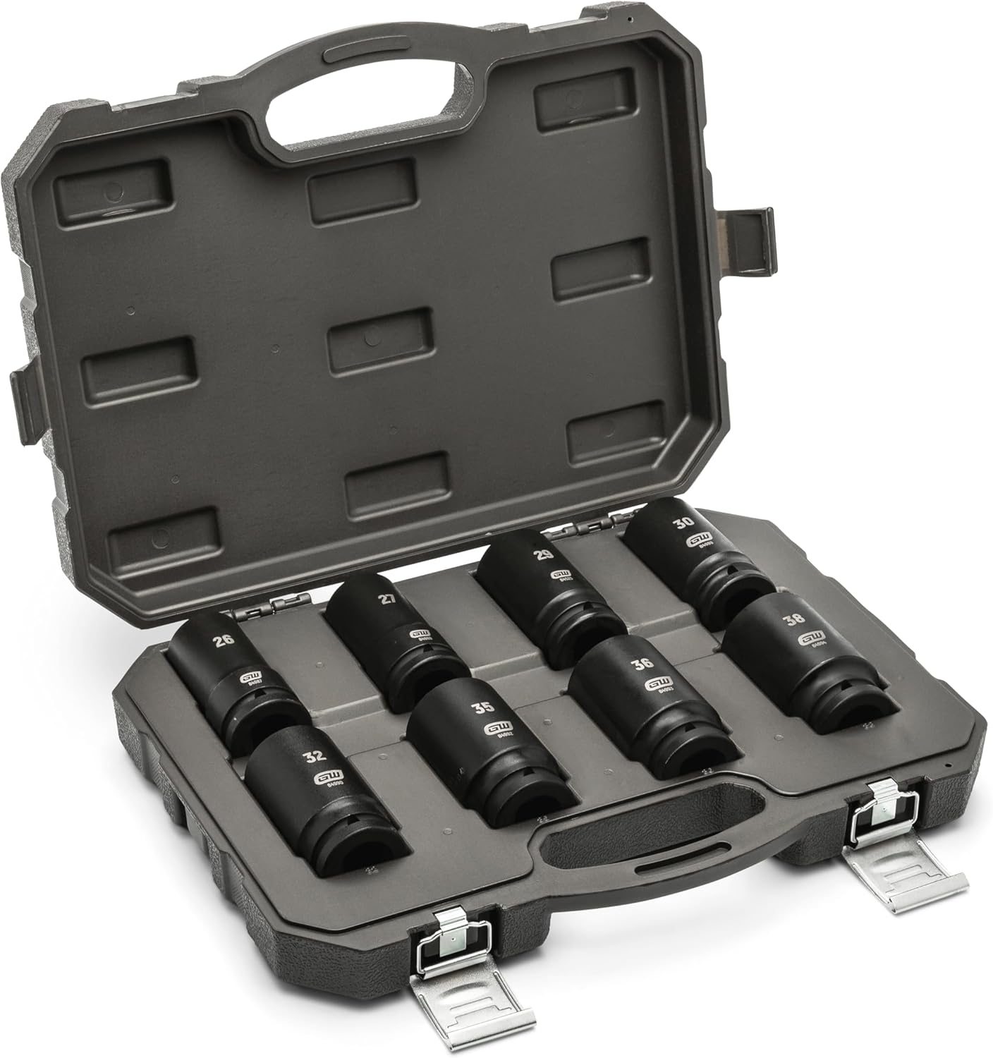 The GEARWRENCH 84030 - 3/4" Drive 8 Piece 6 Point Metric Impact Socket Set is built to handle even the harshest extreme professional work environment. The set features heavy duty impact sockets made of premium Chrome molybdenum alloy steel (Cr-Mo) for exceptional strength and durability, have high visibility size markings with bright laser etchings and secondary hard stamped size markings, the sockets are of standard “shallow” depth with a 6 point off-corner loading design reduces fastener rounding. The sockets meet or exceed ASME specifications for strength/durability and feature a pin hole that can be used with pin and O-ring for secure socket retention to a drive tool. The sockets come packed in a durable blow molded case by GEARWRENCH is designed to withstand extreme conditions and provides protection and organization for the sockets, making it easy to store and transport the entire set.