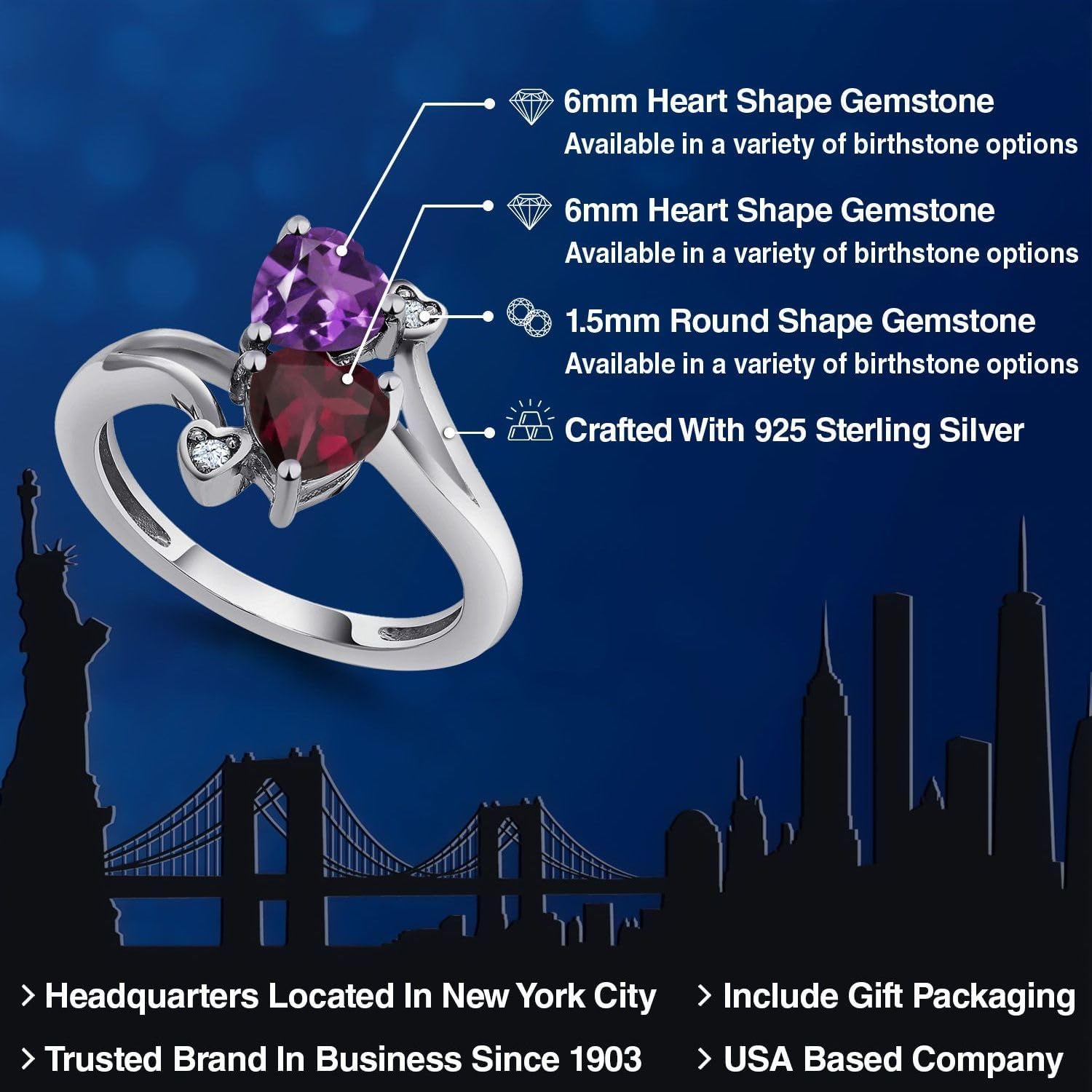 | Gem Type | Amethyst, Cubic Zirconia, Rhodolite Garnet |