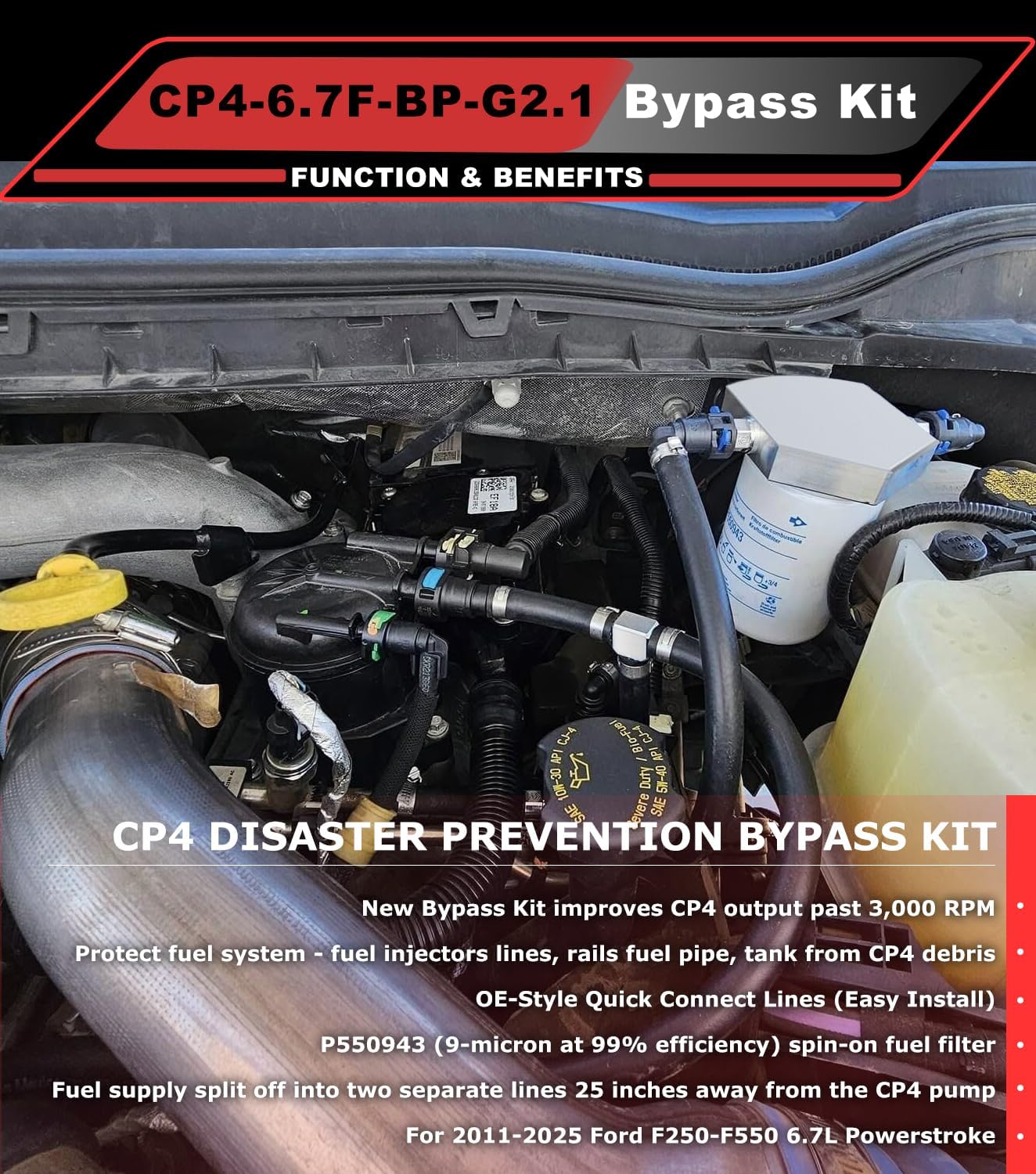 Gen2.1 CP4 Bypass Kit Compatible with Ford F250 F350 F450 F550 Super Duty (2011-2025) 6.7L Powerstroke Diesel Replace# CP4-6.7F-BP-G2.1, 7031190