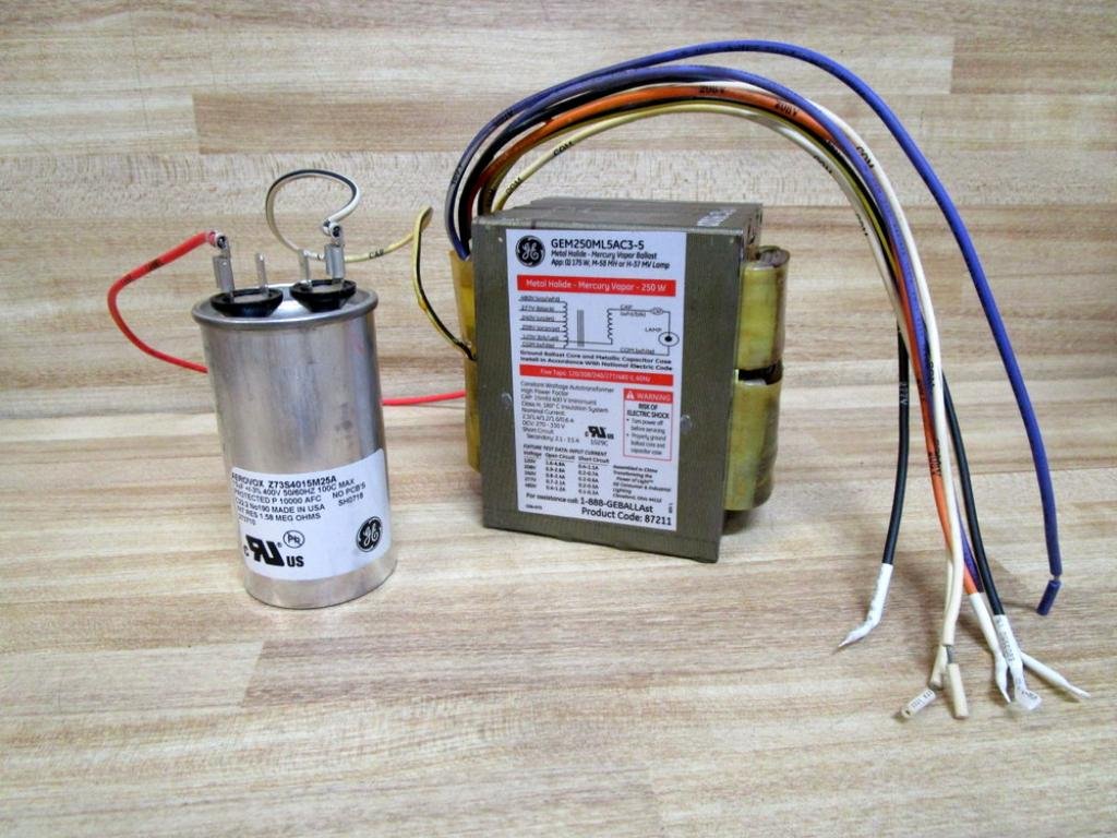 PN: GEM250ML5AC3-5 GEM250ML5AC35 Watts: 25087211Metal Halide Vapor Ballast120/208/240/277/480V(1) 175W, M-58 MH Or H-37 MV LampPre-Wired With Capacitor & IgnitorIncludes: Brackets & HardwareUPC:30043168872110 Aerovox Capacitor:Z73S4015M25A15uF +/-3% 400V 50/60Hz 100C MaxProtected P 10000 AFC No PCB'sC22.2 No190Int. Res. 1.58 MEG OHMS273710 Constant Wattage AutotransformerHigh Power FactorCAP:15mfd 400 V (Minimum)Class H, 180° C Insulation SystemNominal Current:2.3/1.4/1.2/1.0/0.6 AOCV: 270-330 VShort Circuit Secondary:2.1-3.5 A(2) Wire Leads To Capacitor(7) Wire Leads070915941