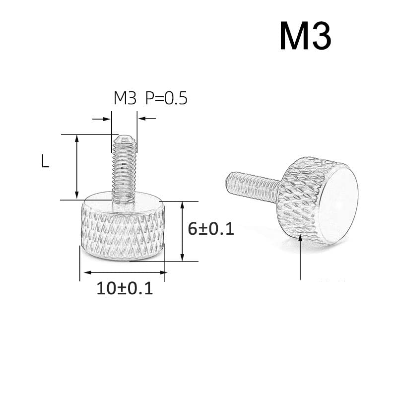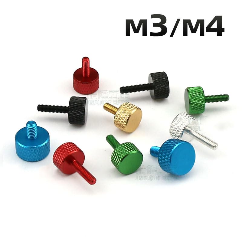 10 20 30 50PCS M3 M4 Aluminum Alloy Thumb Screws Adjust Chassis Screw Multiple ColorModel: Thumb ScrewsMaterial: Aluminum AlloyProduct Size:"Diameter" x "Length"e.g:M3x6mm. Diameter=3mm, Length=6mm