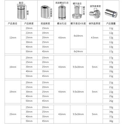 Tips: Due to different batches and measurement methodsThere is an error, please prevail in kind! 20pcs D16 * 20mm Stainless Steel 304 Glass Separator Announce Fixing Pin Sign Mounting HardwareFeatures: and .Made of 304 stainless steel material, 304 stainless steel material provides strength and offers good corrosion resistance.Small size and light weight, convenient to use.There are a total of 20 glass stands that you can use for many projects.Widely used to fix and support the glass advertising board, store sign, mirror, etc.Specifications:Material: 304 stainless steelSize:D16 * 20mmQuantity: 20 piecesPackage List:1 set * glass stand with mounting accessories