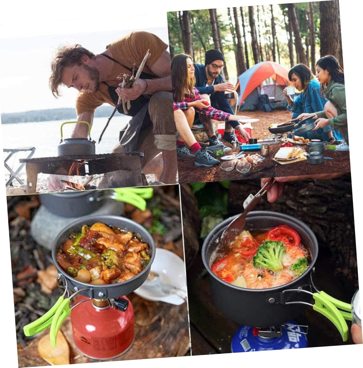 Package Include 1 x frying pan 1 x stockpot 1 x kettle 3 x eating bowls 1 x set of tableware (fork, spoon and table ) 1 x chopping board 1 x carabiner 1 x storage bag 1 x storage pouch for tablewares 1 x spade 1 x cleaning ball 1 x bowl with handle Features -Size: . 17 x 17 x 8.6 cm / 6.69 x 6.69 x 3.39 inch Portable Picnic Tableware -Material: Aluminum Alloy Non-stick Cookware Kit. -Color: Green & Grey Portable Cutlery. - Foldable and lightweight. it can be folded in a storage bag, easy to carry Portable Pot Set. - Enjoy a good outdoor activity with this camping cooking set Picnic Cookware Kit. - Lightweight and aluminum alloy for camping backpacking Cooking Supplies Kit. - Made of aluminum alloy material for and use Professional Utensils. - This outdoor cooking set is designed for 1-2 people Cooking Tool.Goods DescriptionSimple Camping Cookware Lightweight and , for camping backpacking, hiking, picnic and other outdoor activities.Camping Tool This item is a set of cookware for outdoor which is made of aluminium alloy materials for and long time use.BBQ Accessories It is so portable that you can take out with you and cook some food anytime and anywhere