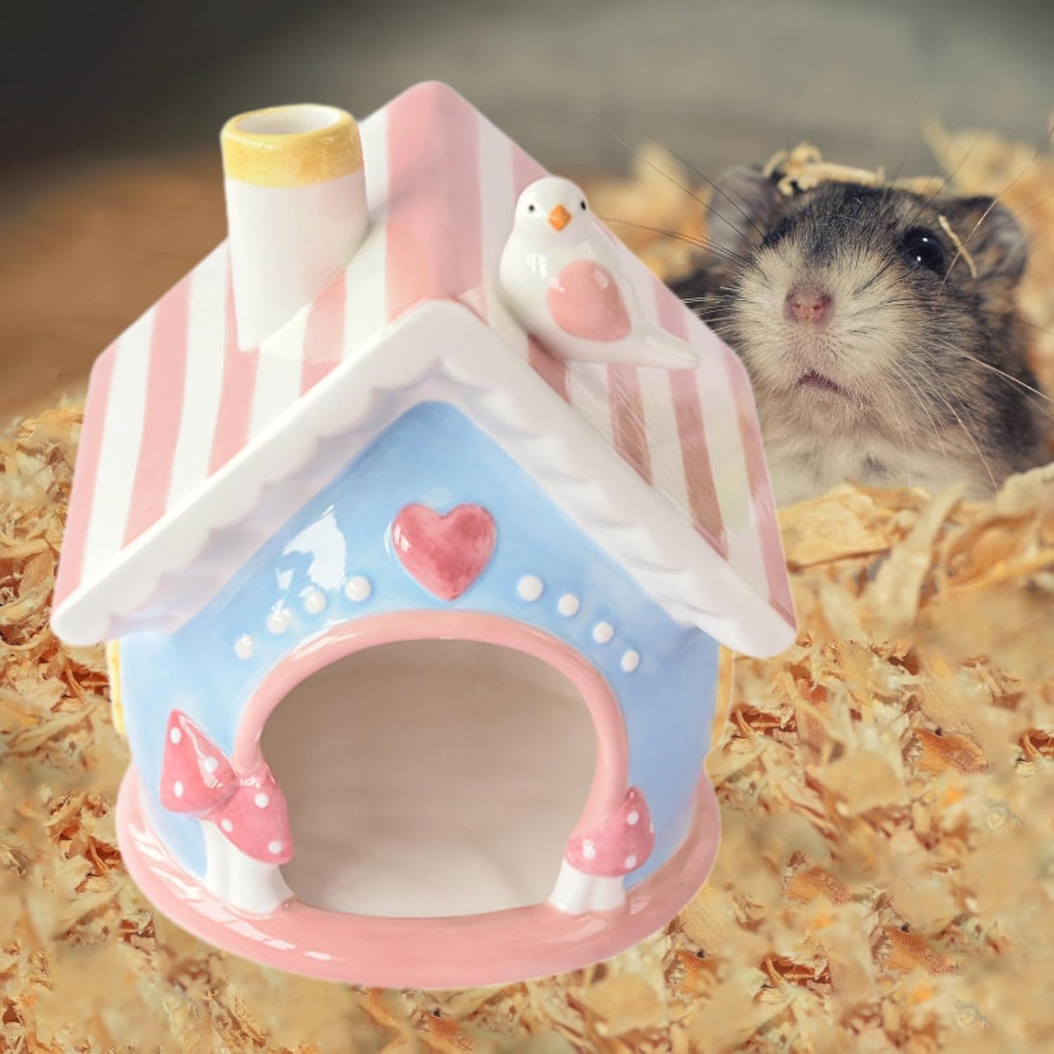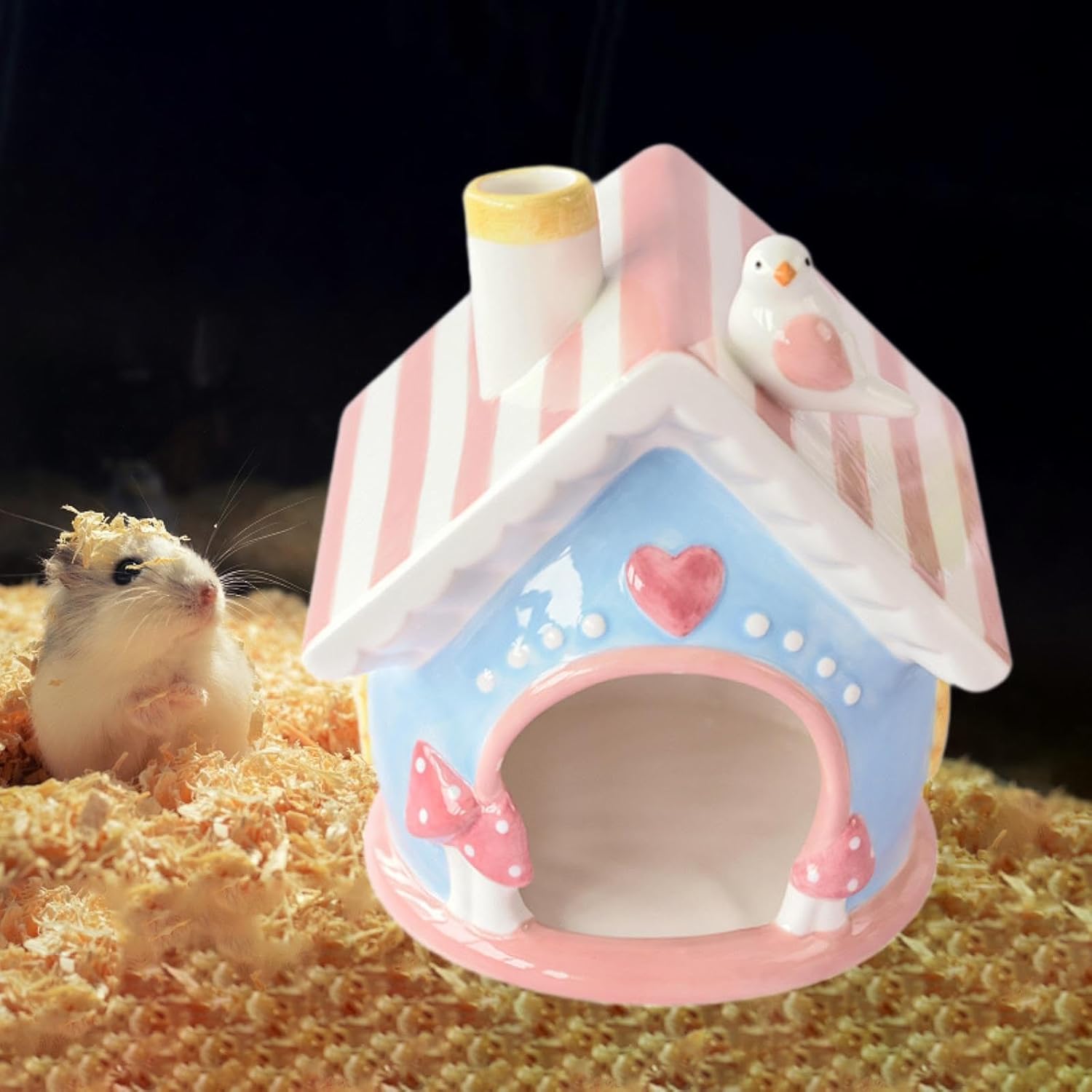 Description: - 【Material】: Ceramic hamster habitats is made of quality ceramic material, smooth, glazed, and sturdy - 【Function】: Hamster hideout house can not only be used as a hiding place for small animals, but also as a decoration in cage - 【Decoration】: Cartoon hamster ceramic hideout is decorative, a funny and delicate small hamster house - 【Feature】: Hamster hideout provides your pet hamster with a safe and place to exercise and play - 【Gift】: This small pet cage is suitable for hamsters, guinea pigs, mice, chinchilla, hedgehog, gerbil, and other small petsSpecification: - Material: CeramicSize Chart:18cmx16.1cmx14.5cm/7.09inchx6.34inchx5.71inchPackage Includes:1 Ceramic Hamster Habitat