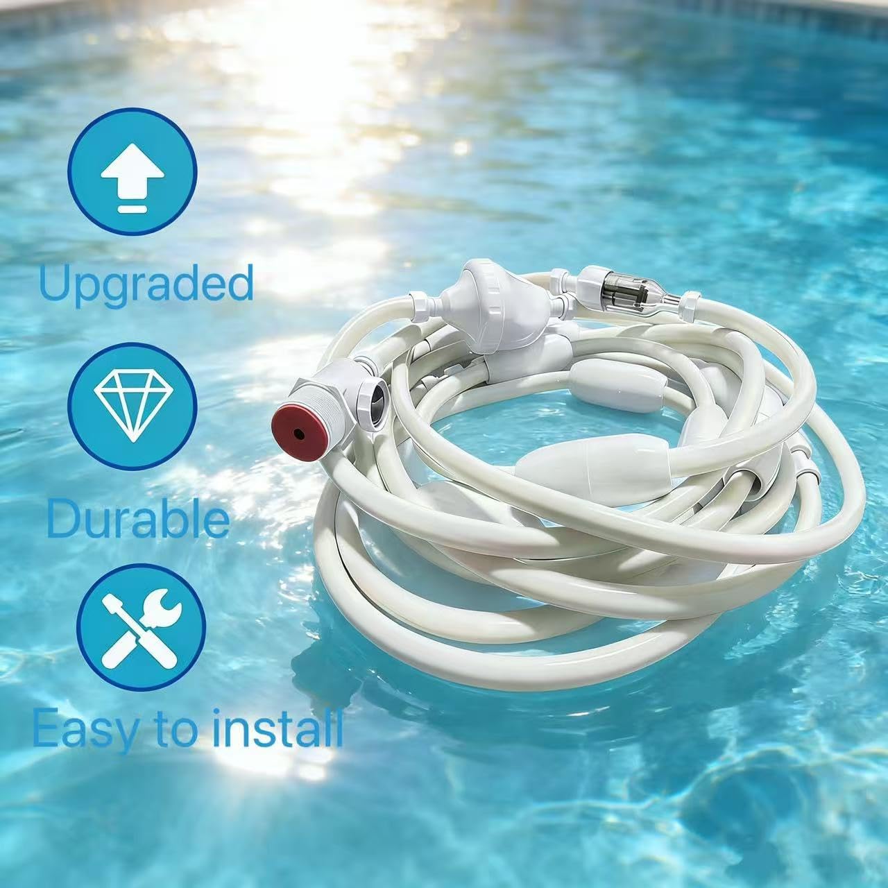 This generic replacement inlet hose, model G5, is the perfect solution to restore optimal performance to your Polaris automatic pool cleaner. Designed as a direct-fit replacement part, it is fully compatible with a wide range of popular Polaris pool cleaner models including the 180, 280, 380, and TR28P. When your original hose becomes cracked, stiff, or damaged, this replacement ensures your cleaner can once again move freely and efficiently across your pool floor and walls. Crafted from high-quality, flexible materials, this inlet hose is built to withstand constant exposure to pool chemicals, UV rays, and varying water pressures. Its durable construction resists kinking and cracking, providing reliable performance and extended service life for your pool maintenance system. The precise engineering guarantees a secure, leak-free connection to your Polaris cleaner's water management system. Installation is quick and straightforward, requiring no special tools or professional assistance. Simply disconnect the old, worn inlet hose and connect this new G5 replacement to get your pool cleaner back in working order within minutes. This easy maintenance helps you avoid costly service calls and minimizes pool cleaner downtime, ensuring your pool stays consistently clean. The primary function of this inlet hose is to deliver a steady, powerful stream of water from your pool pump to the cleaner's propulsion and scrubbing mechanisms. A properly functioning hose is critical for generating the necessary water pressure to drive the cleaner's movement, operate its backup valve, and power its debris bag shaking function for effective filtration. By choosing this replacement inlet hose G5, you secure a cost-effective alternative to overpriced OEM parts without compromising on fit or performance. It effectively restores the strong suction and agile navigation your Polaris 180, 280, 380, or TR28P cleaner needs to pick up leaves, dirt, sand, and other debris, keeping your pool sparkling clean all season long.