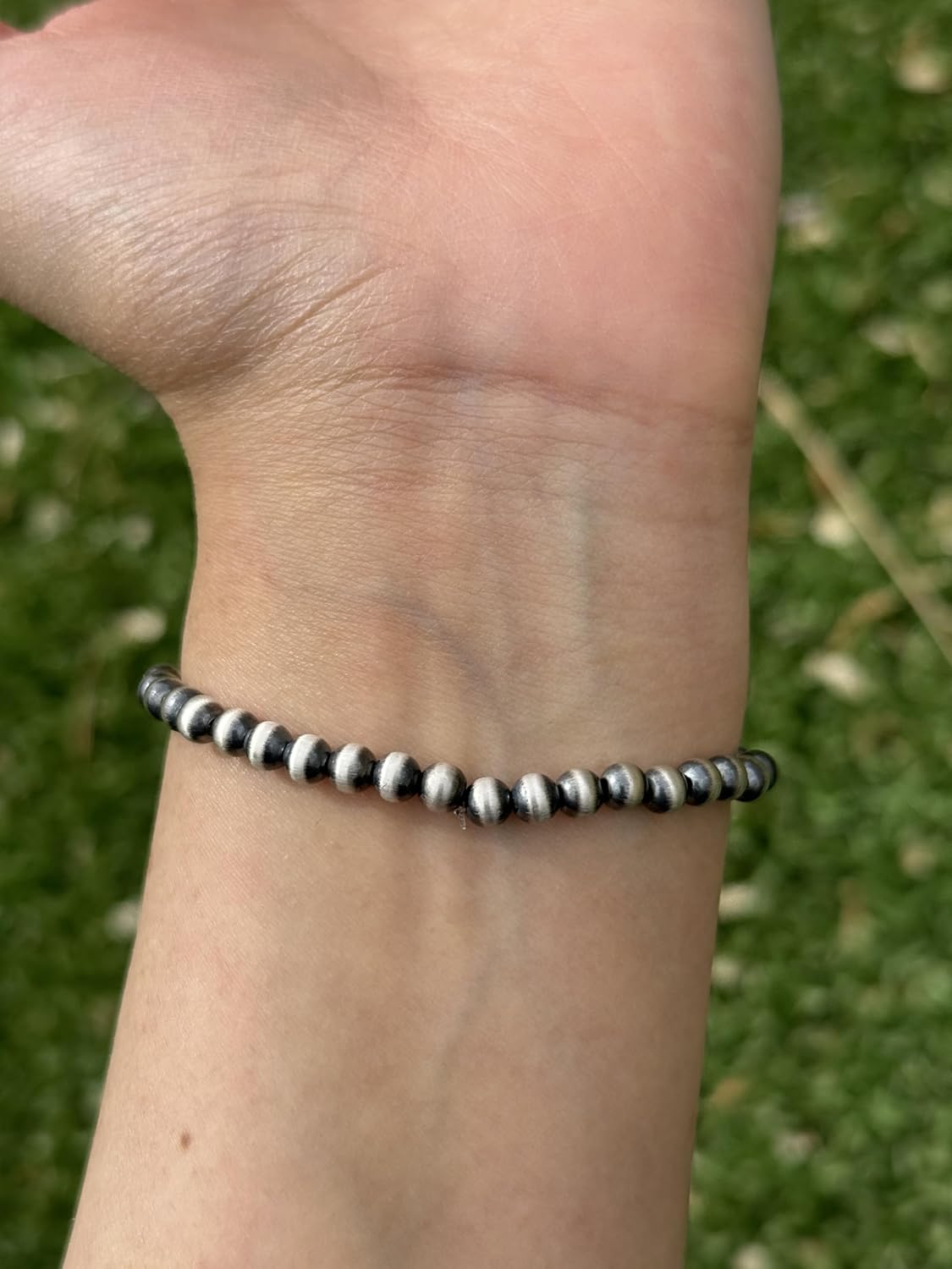 Genuine Southwestern 925 Sterling Silver Stretchy Elastic Pearls Bead Bracelet. 7 Inches. Available in 4mm, 5mm, 6mm, 7mm, 8mm, 10mm, 12mm, 14mm, 16mm