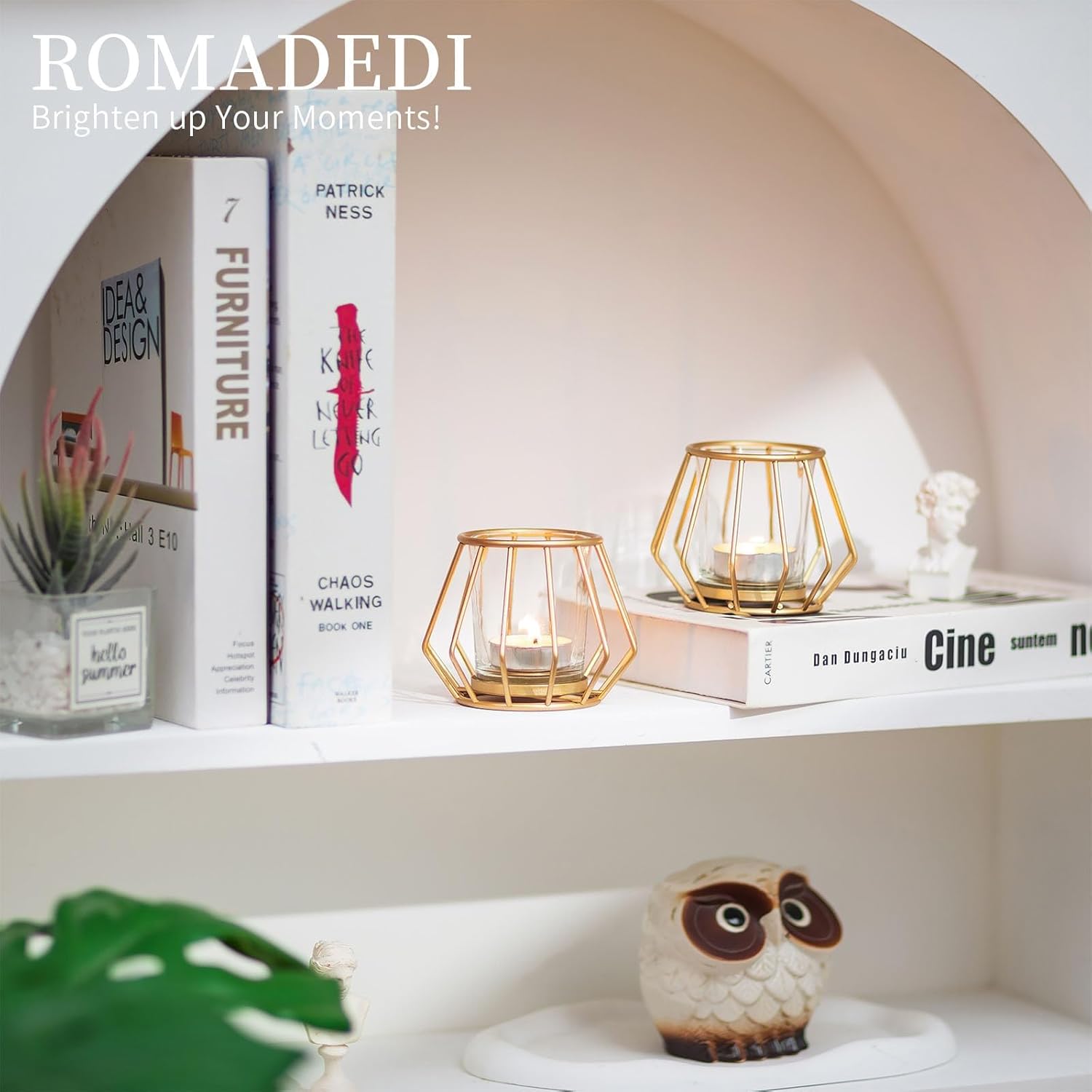 Longest sideCandle holders are both functional and decorative, and also an easy way to spruce up your space. Romadedi do believe this, and is working to list various styles of quality and decorative candleholders online here. This decorative candle lantern has different sets, modernity looking. Fit any space in your house, you can move it here and there for decor, such as shelf, fireplace mantel, entryway, coffee table, bed room,living room Or for seasonal decorations, such as winter festive decoration, summer night party decoration Fit tealight candles or flameless battery operated tea lights candles Specifications: Material: glass+ metal Size: Glasses; Bottom side length:1.85''; Top side length: 2.16'' High: 2.63'' Rectangular metal frame; Longest side: 3.95'' High:3.15''