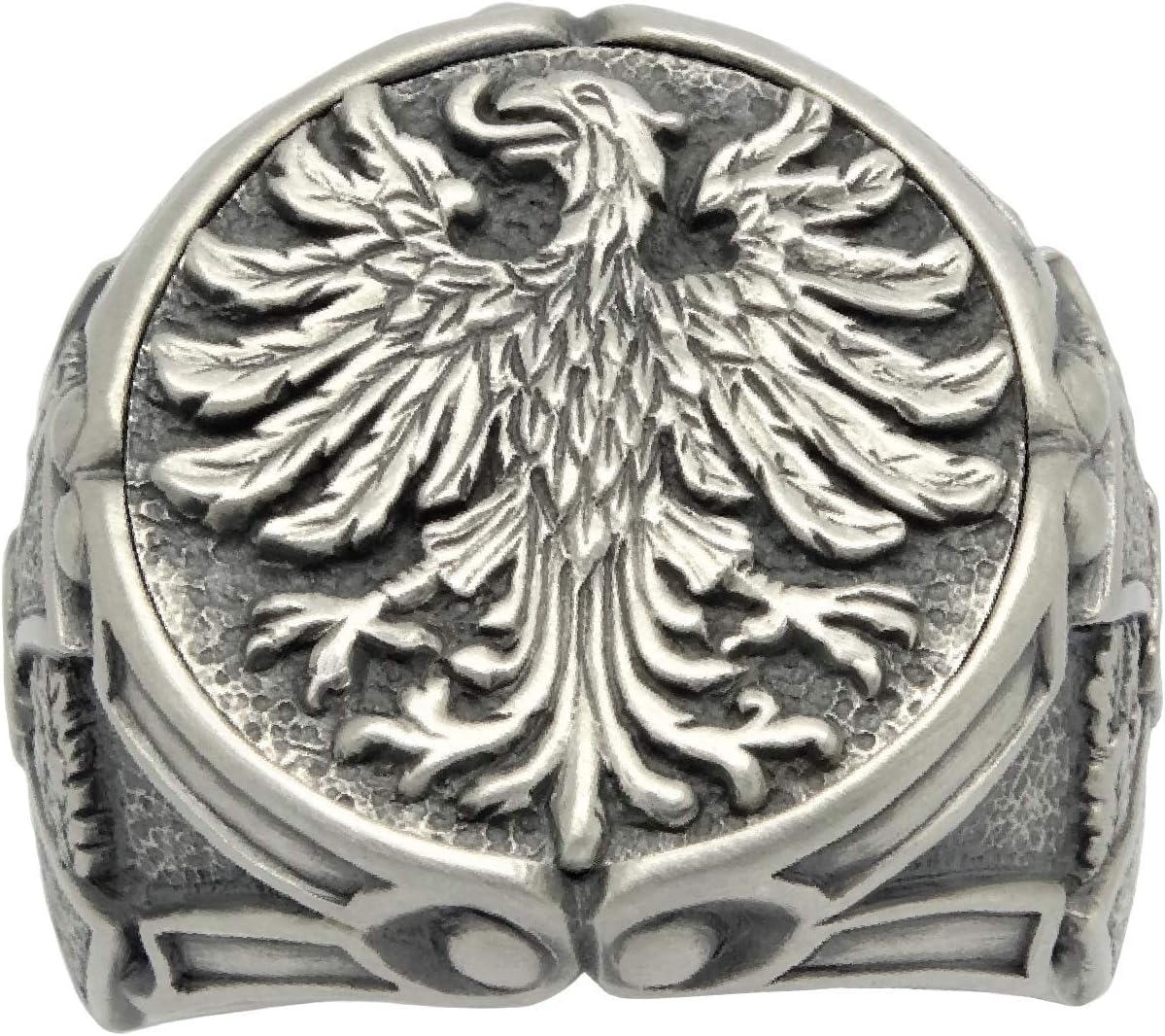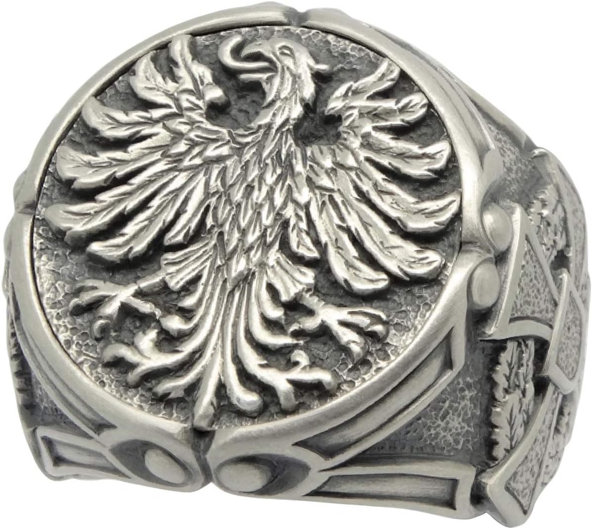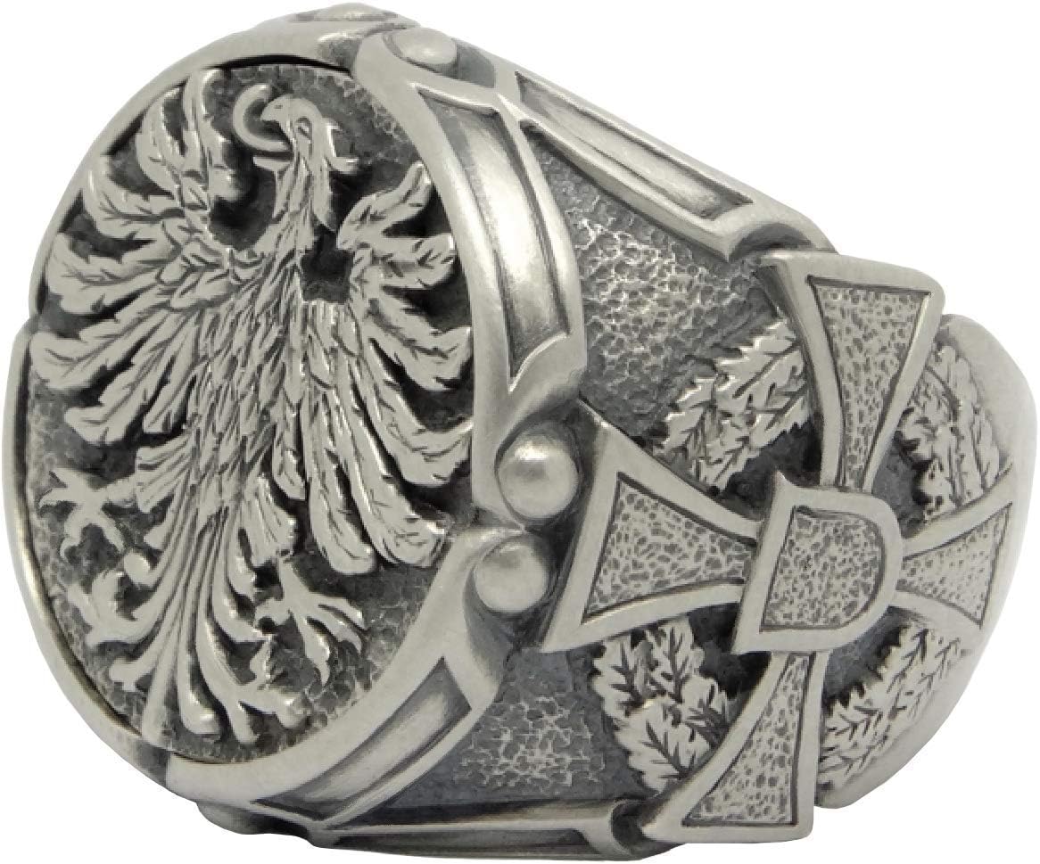 GERMAN FEDERAL EAGLE STERLING SILVER 925 CROSS BIKER MEN'S RING. Excellent new condition, Rustic finish, stamped 925 Weight 21-22 grams. Top dimensions 21 mm. Rare piece, top quality, best craftsmanship, handmade. Sterling silver Handmade German eagle or the coat of arms of Germany men's ring. The Weimar eagle was adopted by the Federal Republic of Germany in 1950. On both sides of the ring is the ancient German iron cross with oak wreath. Don't hesitate to ask questions!