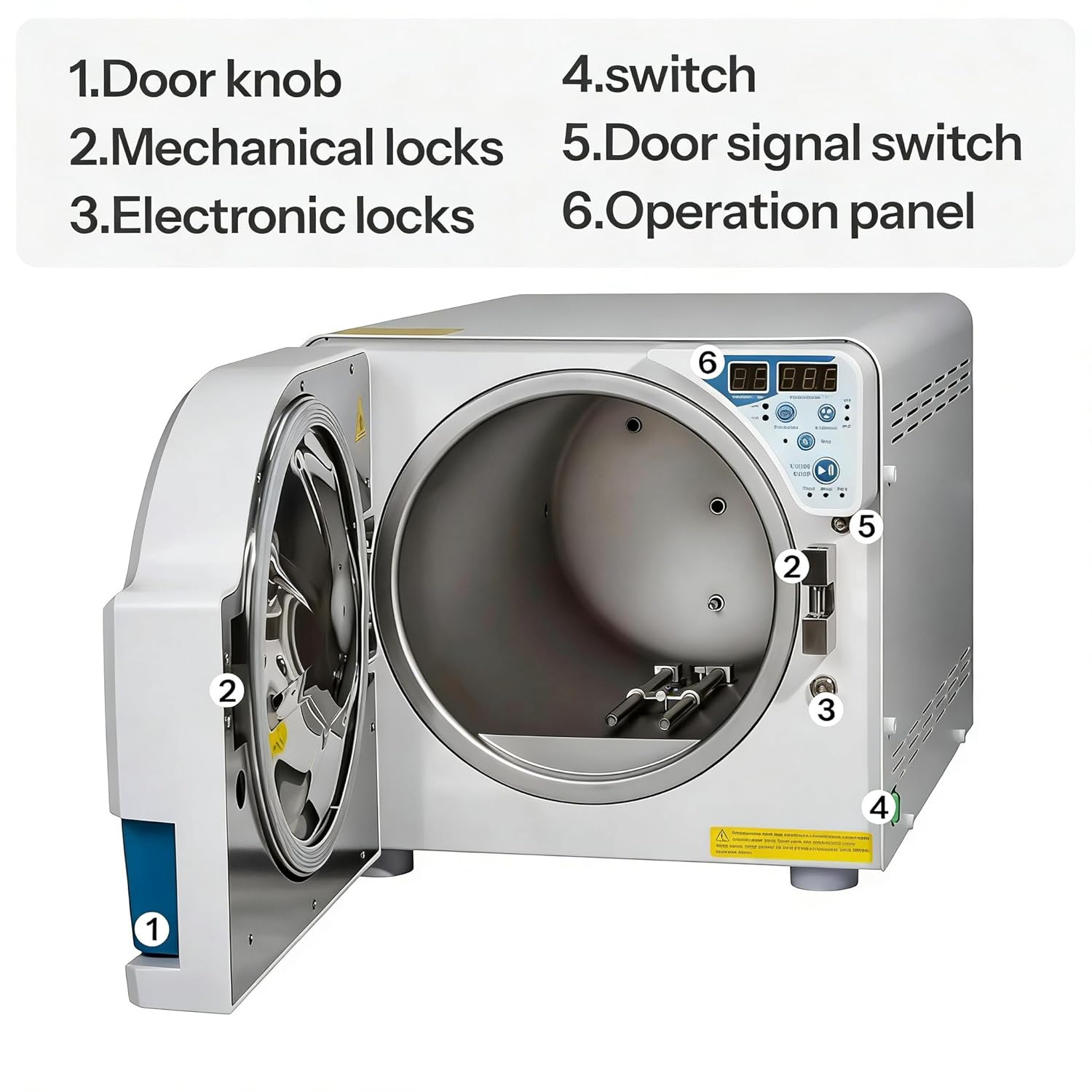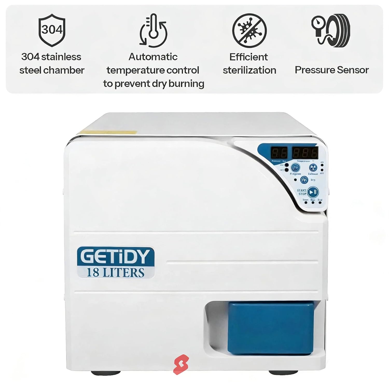 Specification: 1. Chamber size: Ф25cmX35.5cm 2. Machine size: 47.5*38.5*36.5cm 3.Machine weight: G.W:29.9kg, N.W:28.4kg 4. Power: AC110V 60Hz/1500VA; 5. Sterilization temperature/sterilization pressure: 121℃-1.2bar/134℃-2.2bar 6. Sterilization time: 25Min(121℃)/6Min(134℃) Accessories: 1.Tray and rack* 1Set 2.Tray holder* lpc 3.Ф 13 clamp*1pc 4.Ф 12 Drain tube-2m* 1pc 5.Fuse *2pcs 6.500ml Measuring cup* 1 pc