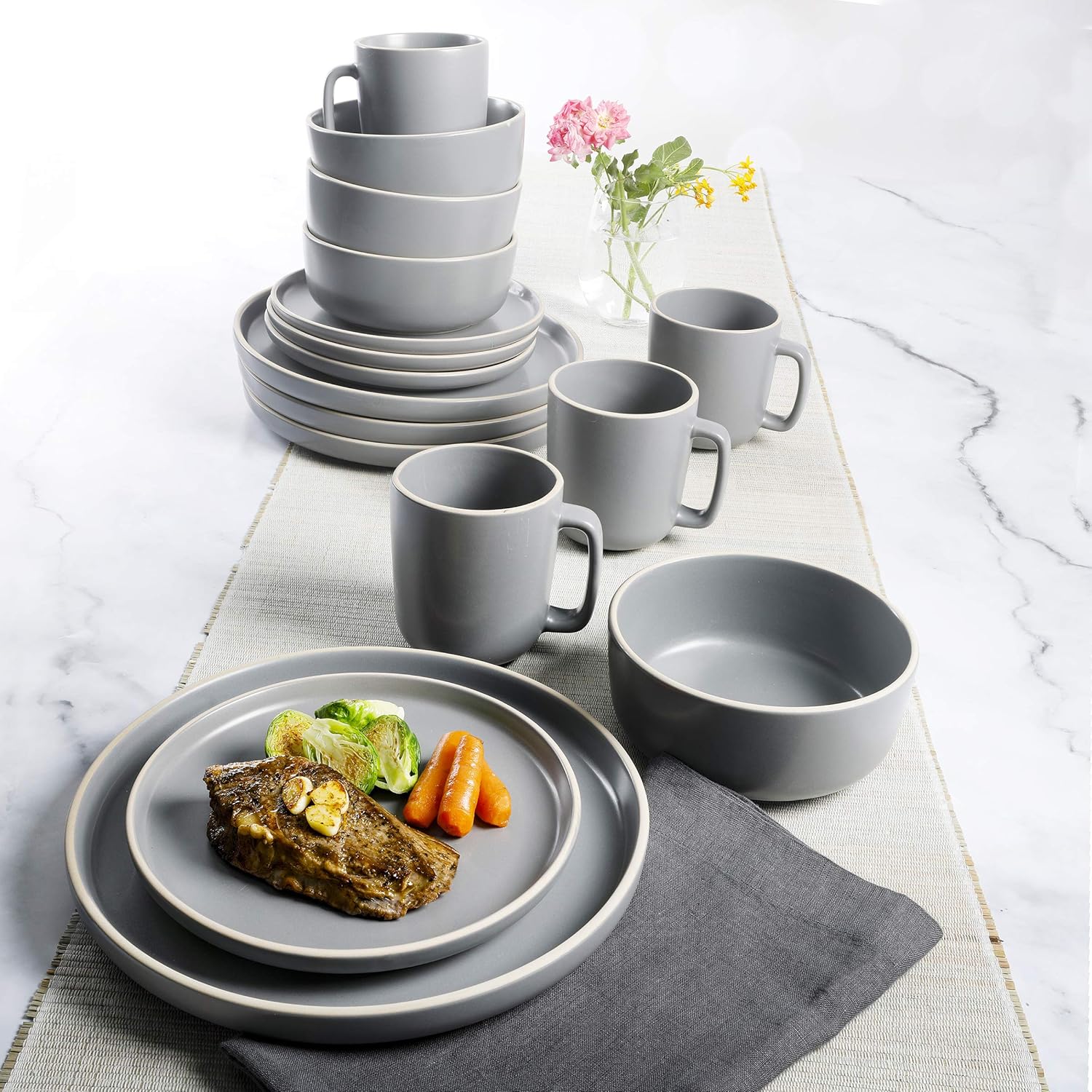 The Gibson Home Zuma 16 Piece Dinnerware Set was designed with basic intentions: create high quality dishes that you will simply love looking at. At Gibson, we believe the kitchen is the most important part of every home. With that in mind, we wanted to create a set that will add a pop of beauty to your cabinets and dining tables. The lipped rim on each plate is not only aesthetically pleasing but also allows the dishes to stack gently on top of each other in order to conserve space in your cabinets. Enjoy an over sized 16 OZ mug for the long days that one cup of just isn't enough! With a diverse range of 8 colors featured in this Zuma line, there are plenty of opportunities to mix and match colors on your dining table. By playing close attention to our loyal customers requests, we feel we have designed the ideal dinnerware set for the today's consumer. Enjoy great value and stylish design with the Gibson Home Zuma 16 Piece Dinnerware Set!