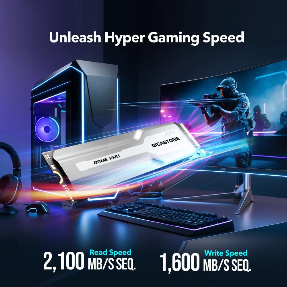 GIGASTONE M.2 SSD 500GB PCIe 3.0 NVMe SSD Internal Gaming Solid State Hard Drive Turbo Speed Heatsink Cooling Heat Dissipation PC Laptop Storage for Gamers Video Editing Creators up to 2,100MB/s