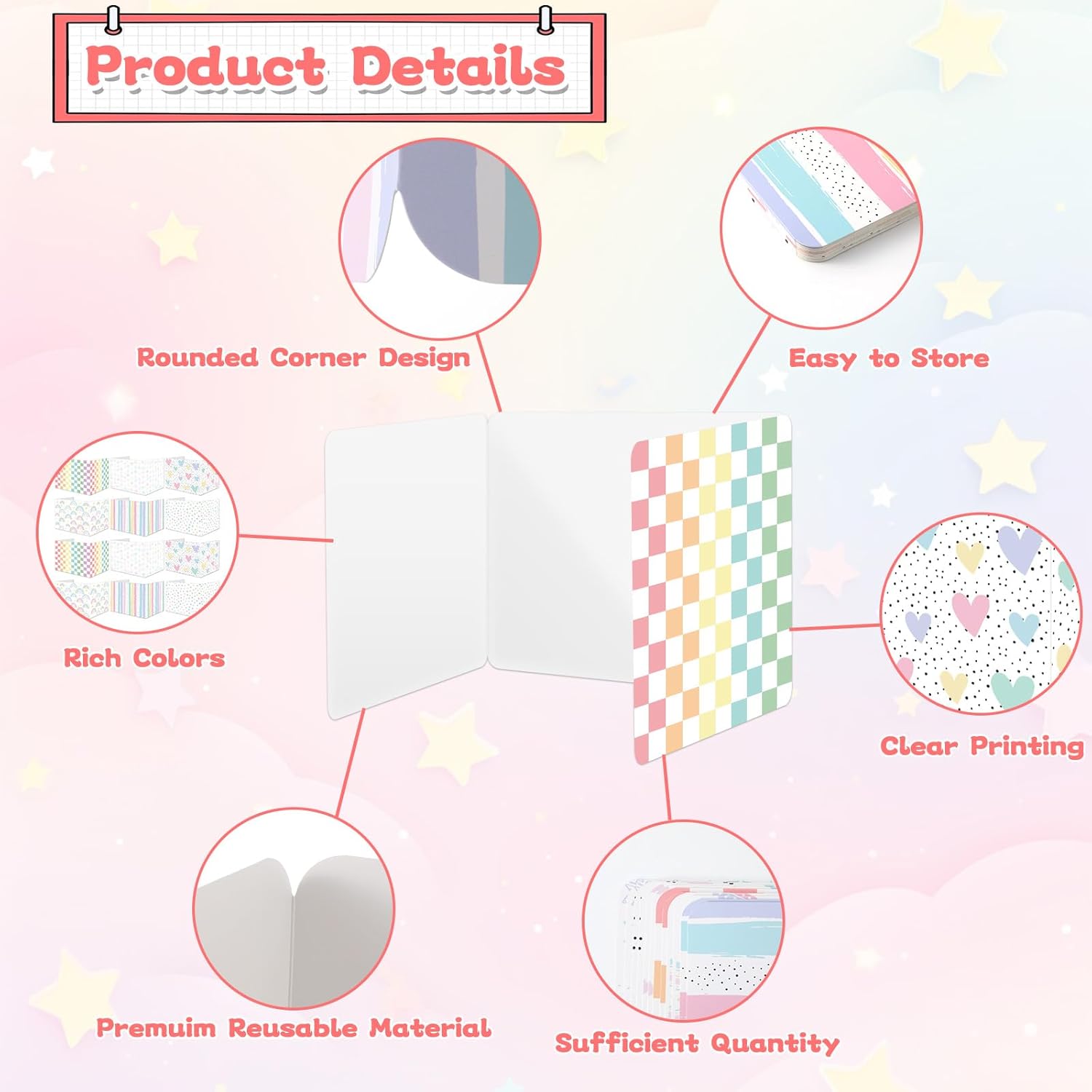 gisgfim 24 Pack Privacy Shields for Student Desk Pastel Desk Dividers Durable Privacy Folders Testing Dividers Shield Study Boards Panel Partition for Classroom Teacher Back to School Supplies Enhance concentration and maintain privacy with our pastel desktop privacy panel for students. Ideal for classrooms, study rooms, and test environments, these high-grade pastel checkered rainbow heart privacy partition folders offer a simple yet effective way to create a focused and private workspace. Specifications: Material: paper Size: 15.8 x 12 x 13inches Color: colorful Package Includes: 24 x Pastel Privacy Shields for Student Desk Versatile in their application, these pastel testing dividers for classroom can be used in a variety of settings. In addition to being great for student tests and studying, the classroom study carrel dividers are also ideal for offices, libraries, and other public spaces where a private, quiet environment is needed.