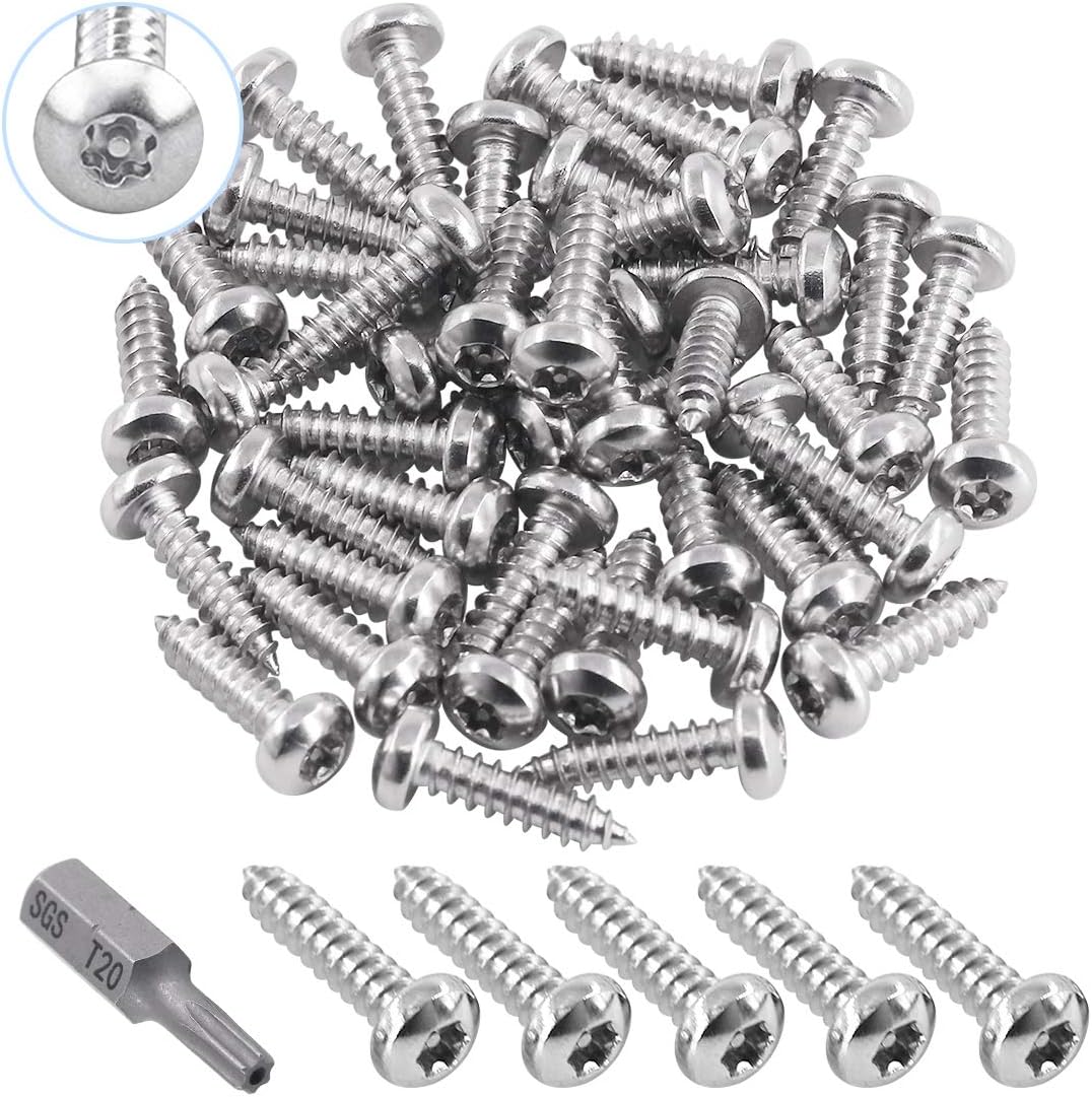 Glarks 51Pcs #8 x 1" Button Head Torx Security Sheet Metal Screws Stainless Steel Tamper Resistant Screws Set with T20 Bit ♛【Specification】: Product Type: Button Head Torx Security Screws Material: 304 stainless steel Head Size: #8 Bolts Length: 1"(25mm) Bit: T20 ♛【Product Feature】: ★ High quality 304 stainless steel material, high strength and rust resistant, will not rust and break. ★ We offer full quantity and size screws for your different needs. Bit included for your easy installation. ★ Tamper resistance design used to deter unwanted screw removal or tampering, more safer. ★ Self drill point will drills nicely into light metal, sheet metal, wood and other surfaces. ★ Best used with metal to wood or metal to metal applications. ♛ 【Package Detail】: #8 x 1" --------- 50pcs T20 bit ---------- 1pc ♛【Note】: ♥ Please check the specific size of the product according to the second picture. Due to manual measurement, there may be errors, please don't mind. ♥ If you have any questions, please feel free to contact us and we will try our best to help you.
