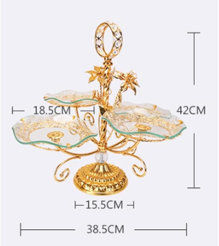 Product: Fruit plateMaterial: Metal+GlassSize: As shownColor: As shownScope of application: families, hotels, coffee shops, etcPackaging: YesTarget users: Candies, fruits and dried fruitsPackaging contents: Fruit platter (other items excluded)Note: Due to manual measurement, please allow an error of 2 to 3 centimeters.Due to lighting conditions, the actual color may slightly differ from the image.gift for housewarming, weddings, birthdays, or Mother's Day. Fits any home from farmhouse