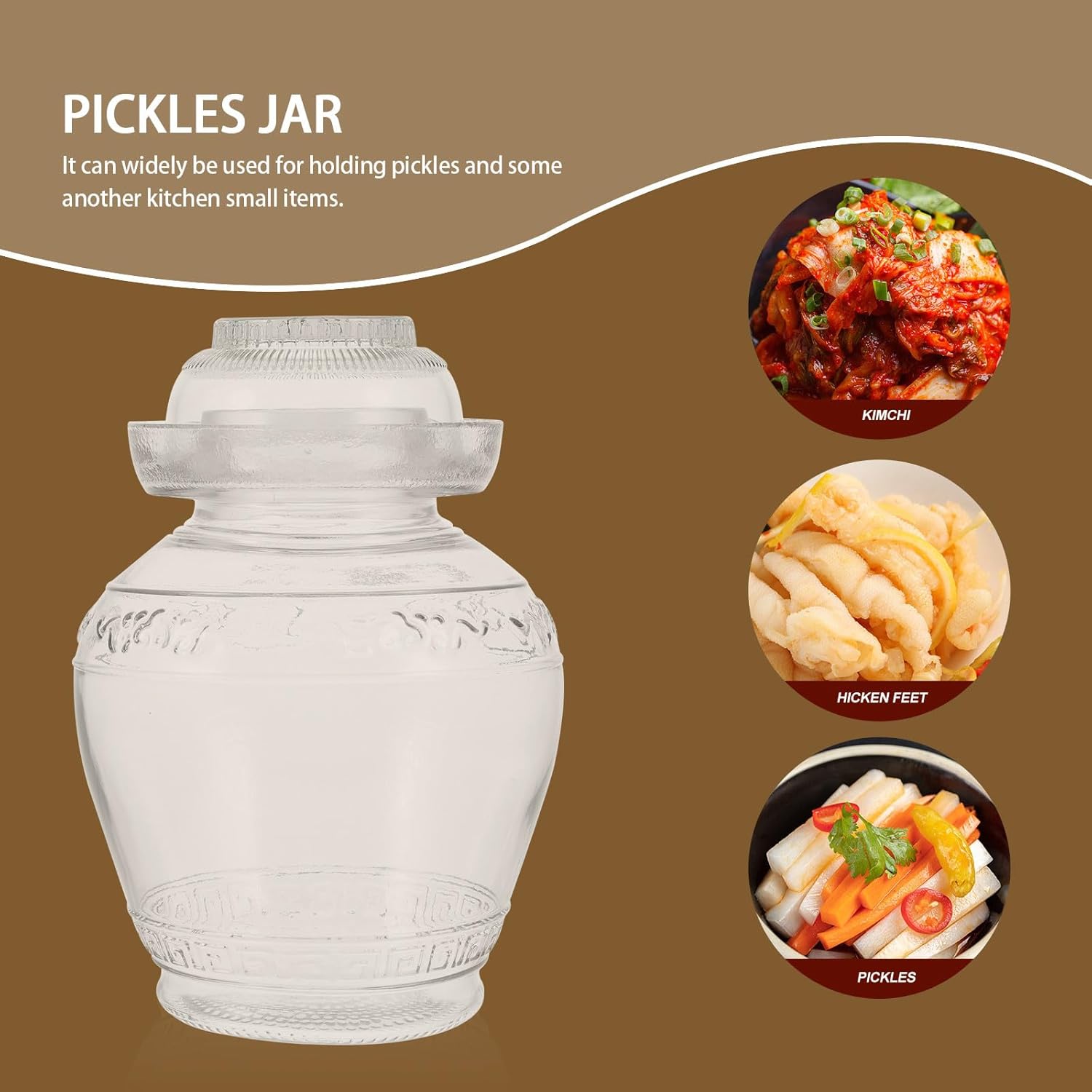 Package Include 1 x pickle jar Features -Product Info:Glass pickled vegetables jar -Material: Glass -Color:Transparent -Size: About 24.00X16.30X16.30cm/9.43X6.41X6.41inch -Capacity: 2.5kg kimchi jars and lids - It has a simple design, but very practical in use, bring much convenience to you pickle storage container. - Adoption of material, sturdy, practical, could for long time and use. - It allows food to stay fresh and dry. , secure and convenient packaging way pickling jar. - The sealed storage jar is a perfect helper to store pickles. High borosilicate heat resistant glass, fine workmanship, thickening production, high strength Pickle Vegetable Can. - Sealing design keeps moisture, dust and from coming into the food inside traditional glass fermenting jar.Goods Informationglass food jar This pickles jar is adoption of high-grade glass to that the flavors you taste come only from your vegetables.traditional glass fermenting jar A carefully designed, food-grade glass prevents oxidation and bad tastes sometimes associated with inferior quality crocks