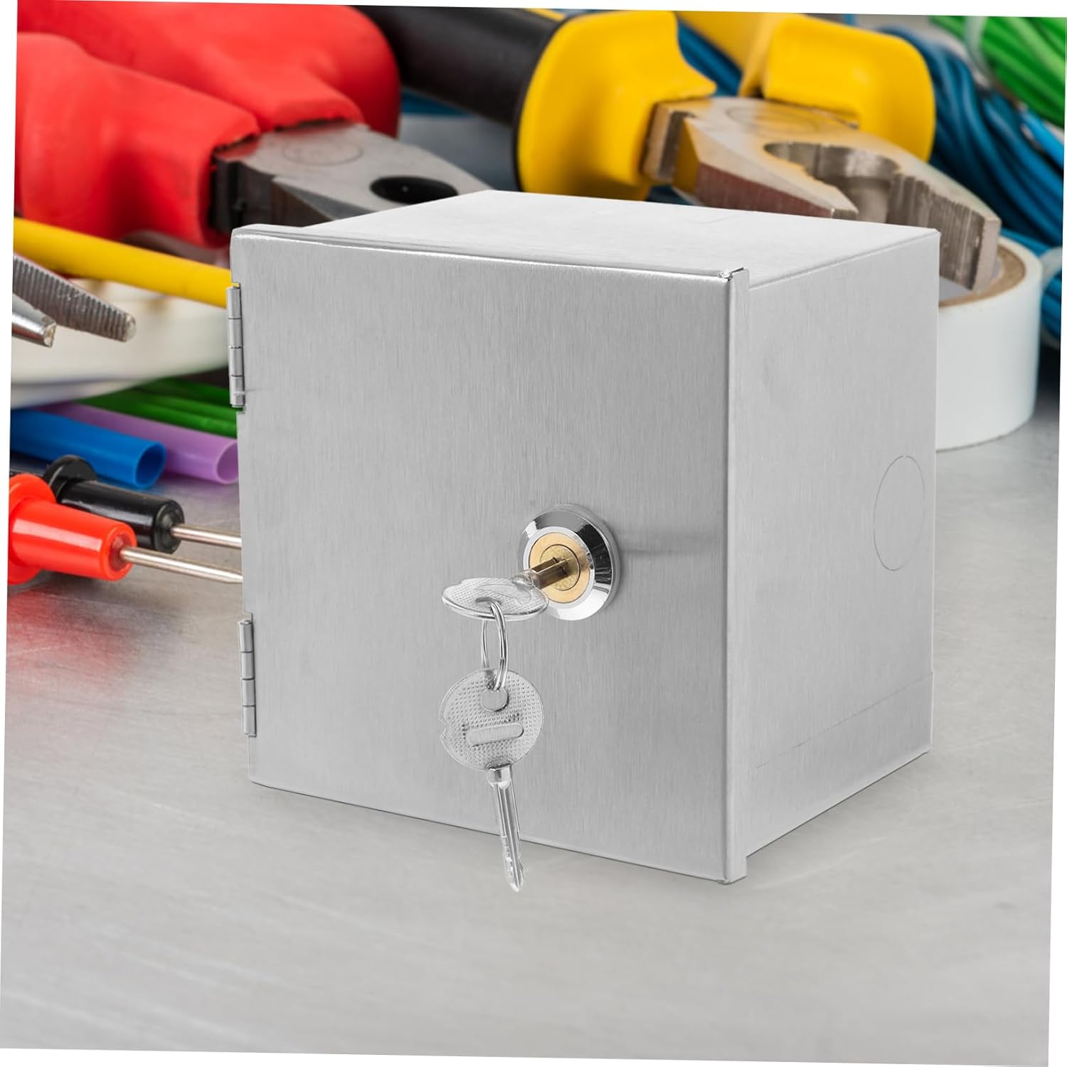 Package Include 1 x anti-theft Socket box 2 Features -Color:Silver weatherproof enclosure box -Secure lock feature: features a secure lock to prevent , ensuring the safety of your electric vehicle charging metal junction project box -Material:Metal weatherproof storage box -Easy to install: designed for easy installation on walls or floors, providing convenience and ease of use for users waterproof outdoor electrical box -Reliable waterproof design: constructed with reliable waterproof materials to protect against rain, ensuring the safety of your electrical equipment switch protection box - : acts as a defense against , preserving the integrity of your electrical devices electric outlet box -Spacious interior: offers a spacious interior to house multiple sockets and cables, making organization and storage straightforward waterproof socket box -Size:12.00X12.00X9.50cm/4.72X4.72X3.73in electrical junction box weatherproofGoods Descriptionexterior outlet box The waterproof socket box is designed to protect your electrical outlets form other environmental factors.outdoor electrical enclosure This box is ideal for use in areas where electrical safety and security are paramount.switch socket protective cover Its lockable feature ensures that your connections remain secure and tamper-proof, providing peace of mind in both indoor and outdoor installations