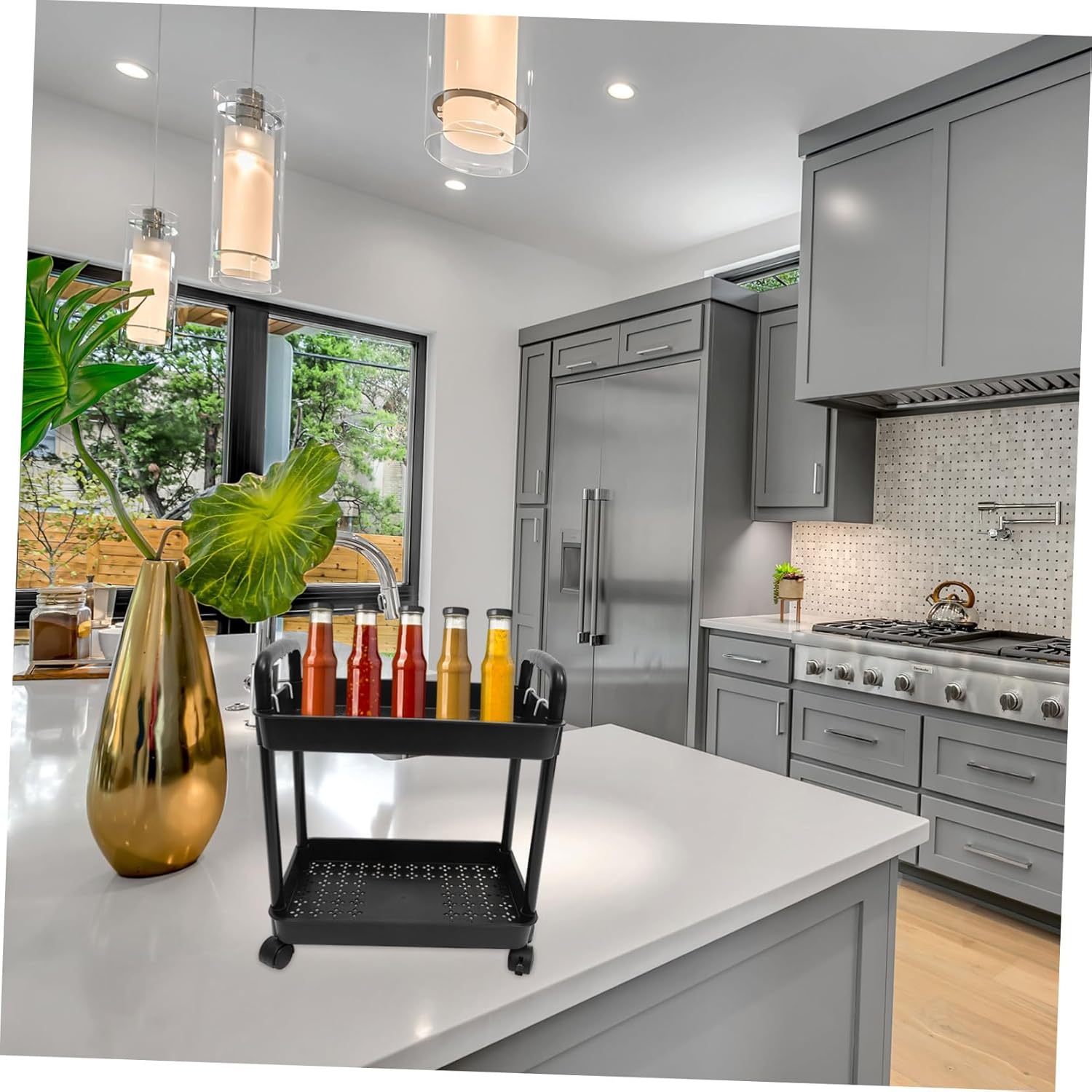 Package List 1 × Rolling Cart 4 × Hooks Features - Good craftsmanship: Made of good PP materials, workmanship, this rolling cart is and cart with wheels organizer. - Easy to move: With swivel wheels, it can move easily and flexibly, making it easy to use rolling cart organizer. - Large storage space: Double-layer design, this cart can store more items, make the room more tidy and organized utility cart on wheels. - Multi-functional use: This rolling cart can be used as a storage rack, bookshelf, display shelf, versatile and craft rolling cart. - Simple and elegant: Simple and elegant appearance, the utility cart on wheels is suitable for many kitchen cart with wheels. - Size: 44.00X37.00X25.00cm/17.29X14.54X9.82in bathroom storage cart - Color: Black kitchen rolling cart -Material:PP book cartGoods Informationmulti-layer trolley stand want to have a and multi-functional Rolling Utility Cart ? This product will meet your demands.storage cart on wheels With multiple layer and design, makes it easier to store, help you organize your things better