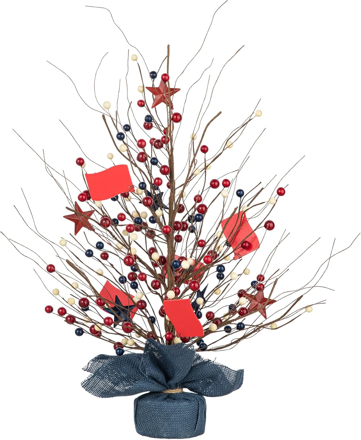 Specifications:Material: 50% Expandable Polystyrene, 30% Cement, 5% Linen, 5% Iron, 10% MDFOverall Dimension: 3.5"L*3.5"W*20"H inchesWeight: 1.87 lbsColor info: Red, White, BlueTheme: Home Decor Occasions: Outdoor & IndoorNo Assembly RequiredFeatures: Elevate your patriotic celebrations with this handcrafted 20-inch Americana Berry Table Tree, designed to embody the essence of American pride. Featuring a lush arrangement of vibrant red, white, and blue artificial berries, this centerpiece is artfully accented with miniature wooden flags and polished metal stars, symbolizing the Stars and Stripes..Packge includes: Patriotic Americana Berry Table Tree * 1