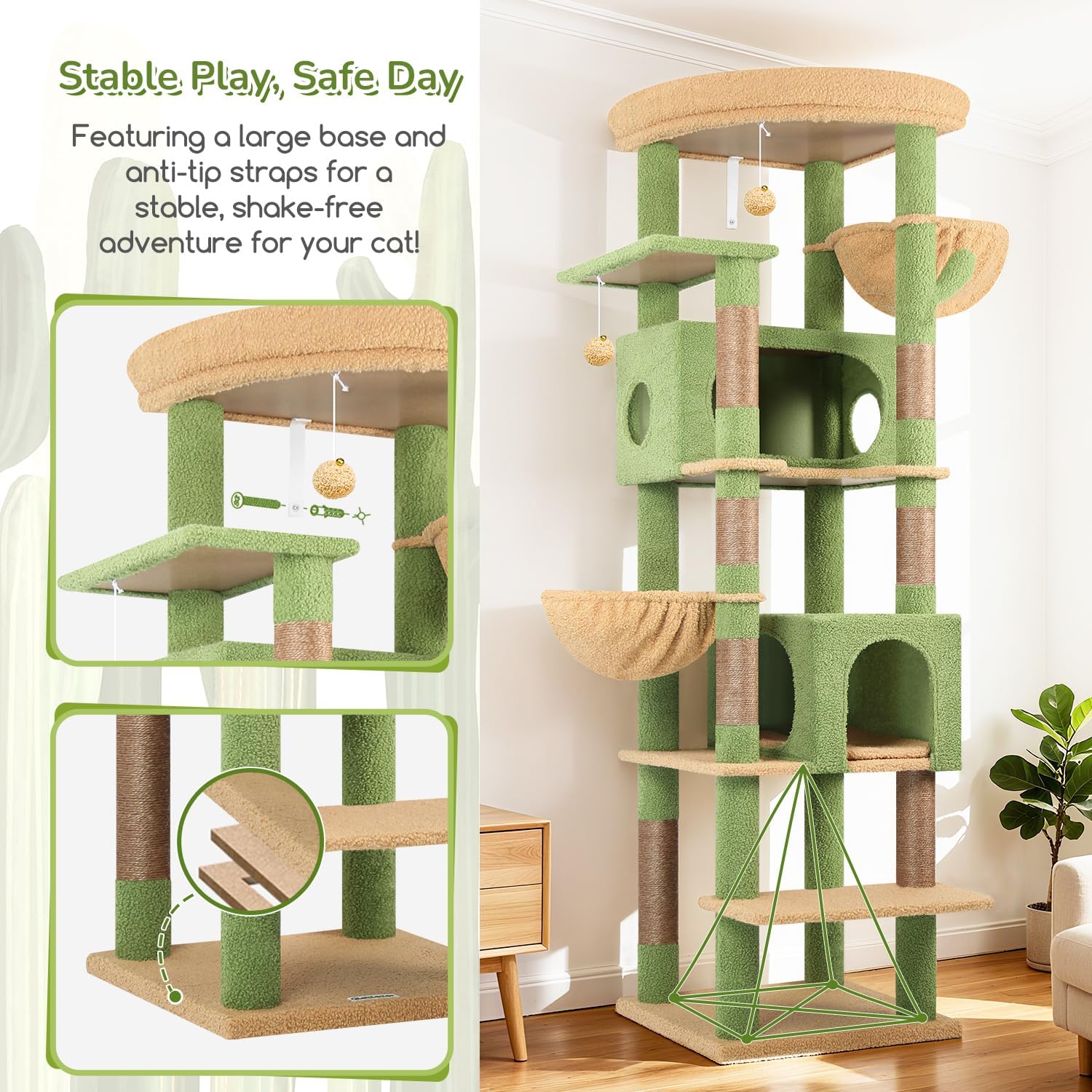 | Material Type | Engineered Wood, Plush, Sisal |