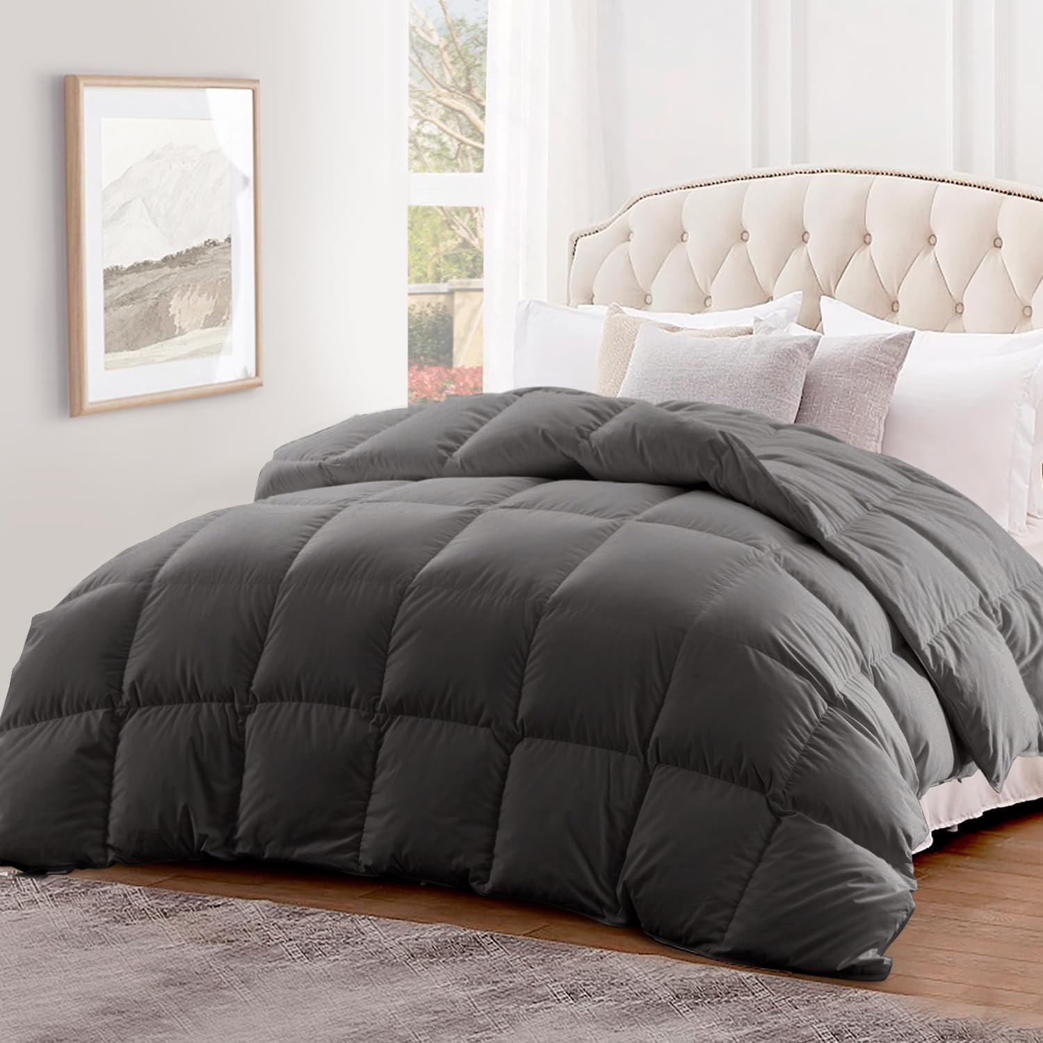 Globon King Size Down Comforter,All Season Hotel Luxury Down Duvet Insert with 100% Cotton Shell & 8 Corner Tabs, 106x90 Inches, Dark Grey