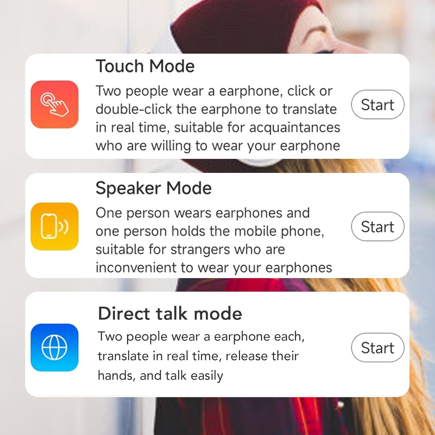 1. [Multi Language Translation] The translation earbuds support 74 languages and 70 accents, offering a total of 144 language translations with a speed of just 0.2 seconds for real time translation, making chat seamless and efficient. 2. [Three Translation Modes] You can choose from three modes: Touch Mode (for chatting with acquaintances), Speaker Mode (for conversing with strangers), and Freely Talk Mode, catering to various scenarios. 3. [Bluetooth 5.3 Connectivity] The real time translation earbuds adopt Bluetooth 5.3 technology, compatible with for for , etc. systems, providing intelligent noise reduction for clear sound. 4. [Touch Control] The translation earbuds feature dual ear fingerprint controls, allowing you to effortlessly manage music, calls, and other functions with a simple touch, eliminating the discomfort of traditional keys. 5. [Long Battery Life] Equipped with high capacity battery that delivers long battery life, ensuring that your conversations can go on without interruption. Spec: Item Type: Bluetooth Translation Earbuds Material: Plastic, Electronics Bluetooth Version: 5.3 Play Format: Mono, Dual Control Method: Touch Control Bluetooth Connection Distance: 10-15M Play Time: 5-6 Hours Charging Time: 1-2 Hours Battery Type: Earbuds: 50mAh x 2 Lithium Ion Batteries (Included) Charging Case: 300mAh Lithium Ion Battery (Included) Support 11 System Languages: Chinese, Traditional Chinese, English (US), French, Russian, Thai, Japanese, Korean, German, Spanish, Arabic Support 144 Languages Translation: (Albanian), Amharic (Ethiopia), Arabic (Algerian), Arabic (Bahrain), Arabic (Egyptian), Arabic (Iraqi), Arabic (Israeli), Arabic (Jordanian), Arabic (Kuwait), Arabic (Lebanese), Arabic (Moroccan), Arabic (Omani), Arabic (Qatari), Arabic (Saudi), Arabic (Palestinian), Arabic (Tunisia), Arabic (UAE), Arabic (Libyan), Arabic (Syrian), Arabic (Yemeni), Armenian (Armenian), Azeri (Azerbaijani), Basque (Spanish), Bengali (Bangladesh), Bengali (Indian), Bosnian (Bosnia and Herzegovina), Bulgarian (Bulgarian), Burmese (Myanmar), Catalan (Spanish), Chinese (Mandarin), Chinese (Cantonese), Chinese (Traditional Chinese), Croatian (Croatian), Czech (Czech Republic), Danish (Danish), Dutch (Dutch), Dutch (Belgian), Dutch (South African), English (Australian), English (Canadian), English (Ghanaian), English (Hong ), English (Indian), English (Irish), English (Kenyan), English (New Zealand), English (Nigerian), English (Pakistani), English (Filipino), English (Singapore), English (South African), English (Tanzanian), English (British), English (US), Estonian (Estonian), Filipino (Philippines), Finnish (Finnish), French (Belgian), French (Canadian), French (France), French (Switzerland), Galician (Spanish), Georgian (Georgian), German (Austrian), German (German), German (Switzerland), Greek (Greek), Gujarati (Indian), Hebrew (Israeli), Hindi (Indian), Hungarian (Hungarian), Icelandic (Icelandic), Indonesian (Indonesian), Italian (Italian), Italian (Switzerland), Japanese (Japan), Javanese (Indonesia), Kannada (India), Kazakh (Kazakhstan), Khmer (Cambodia), Korean (Korea), Lao (Laos), Latvian (Latvia), Lithuanian (Lithuania), Macedonian (North Macedonia), Malay (Malaysia), Malayalam (India), Marathi (India), Mongolian (Mongolia), Nepali (Nepal), Bokmar Norwegian (Norway), Persian (Iran), Polish (Poland), Portuguese (Brazil), Portuguese (Portugal), Punjabi (Gorumochi, India), Romanian (Romania) Russian (Russia), Serbian (Serbia), Sinhalese (Sri Lanka), Slovak (Slovakia), Slovenian (Slovenia), Spanish (Argentina), Spanish (Bolivia), Spanish (Chile), Spanish (Colombia), Spanish (Costa Rica), Spanish (Dominican Republic), Spanish (Ecuador), Spanish (Salvador), Spanish (Guatemala), Spanish (Honduras), Spanish (Mexico), Spanish (Nicaragua), Spanish (Panama), Spanish (Paraguay), Spanish (Peru), Spanish (Puerto Rico), Spanish (Spain), Spanish (United States), Spanish (Uruguay), Spanish (Cuba), Spanish (Equatorial Guinea), Spanish (Venezuela), Sundanese (Indonesia), Swahili (Kenya), Swahili (Tanzania), Swedish (Sweden), Tamil (India), Tamil (Malaysia), Tamil (Singapore), Tamil (Sri Lanka), Telugu (India), Thai (Thailand), Turkish (Türkiye), Ukrainian, Urdu (India), Urdu (Pakistan), Uzbek (Uzbekistan), Vietnamese (Vietnam), Zulu (South Africa), Irish (Ireland), Maltese (Malta), Pashtun (Afghanistan) Note: Supports 74 languages, 70 accents, a total of 144 languages. Armenian (Armenia), Basque (Spain), Punjabi (Gurumoch, India), do not support voice playback How to Use: Turn on to use. packing list: 2 x Bluetooth Earbuds 1 x Earbuds Charging Case 1 x Charging Cable 2 x User Manuals