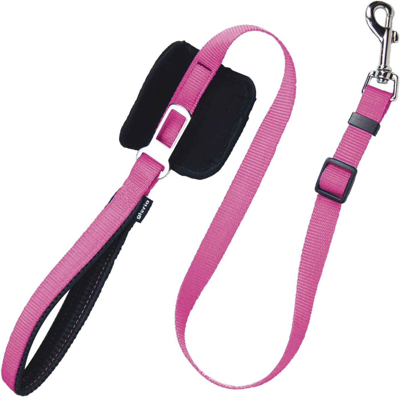 Gloria Pets Car Seat Belt Clip Nylon Strap with Belt Clip Coated with Neoprene Sleeve. This dog safety leash will lift the safety of your walk or when traveling in your car. It has a safety clip to tie your dog in the car and a handle for easy grip before leaving the vehicle. Padded handle for maximum comfort Universal car seat belt (except volvo).