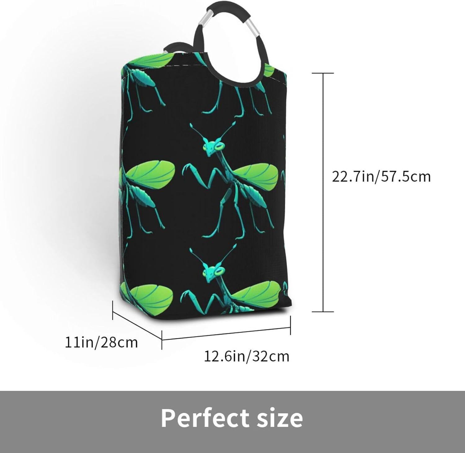 Our Glow-in-Dark Mantis dirty clothes storage bag is made of polyester, which is lightweight and flexible. It can maintain a stable shape even under heavy pressure and collision. At the same time, the incorporation of Oxford cloth material significantly improves the durability of the product, and it is resistant to wear, bumps and pulling. The storage bag is designed with a large capacity, which can easily carry winter clothes, daily clothes and a variety of sundries. It is easy to carry and store, and fits tightly into the gap of the suitcase after folding. The aluminum handle is sturdy and reliable, supports hanging, and is suitable for a variety of places. In terms of design, it adopts leak-proof technology, combined with waterproof coating and precision sewing, which is effectively waterproof. The exterior uses cutting-edge transfer technology, and a PE board support is added at the bottom to ensure stable load-bearing and prevent tipping. This storage bag is practical and easy to use, and is an ideal choice for travel and home.