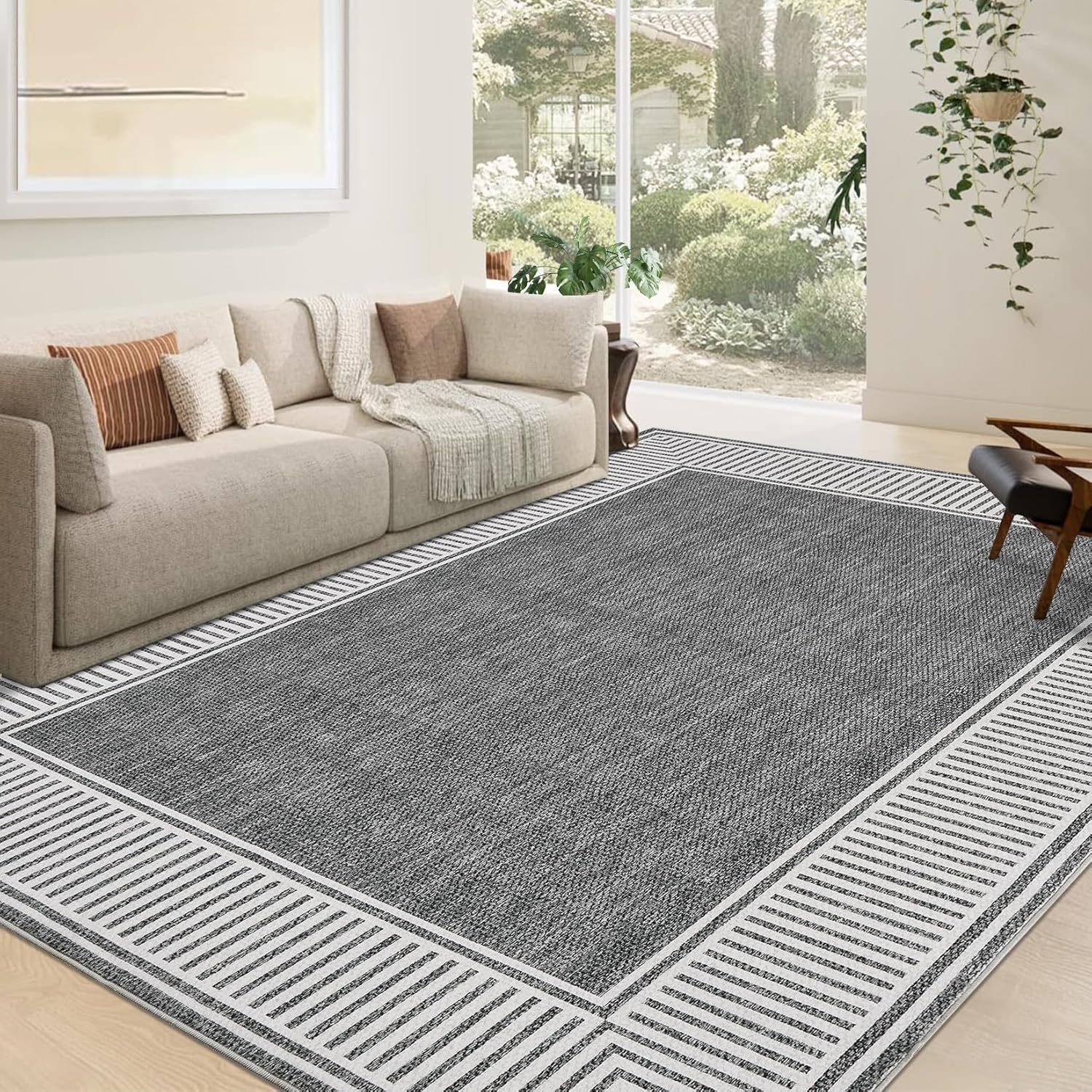 Bring instant comfort and style to your home with this portable, modern area rug—elevate your family gatherings or indoor activities and enjoy effortless living wherever you are!Highlights at a Glance-Luxurious Low-Pile Rug for Modern Living-Slip-Resistant Rug for Worry-Free Movement-Contemporary Elegance with Modern Sophistication Rug-Low-Maintenance Rug for Busy Lifestyles-Compact Foldable Rug for Easy TransportSpecificationName: Area RugStyle: Modern RugFrame Material: PolyesterColor: Black / Gray / Blue / Brown / GreenProduct Dimensions: 2x6 / 4x6 / 5x7 / 8x10 / 9x12 / 10x13Packing List1 x Modern Striped Bordered Area RugUsage Tips1. Please measure your space before purchase to ensure the rug fits perfectly. Rugs may arrive folded; simply lay flat and allow a few days for creases to disappear and the rug to regain its original shape.2. This abstract area rug is machine washable for easy care. For best results, use a gentle cycle and air dry. Avoid using bleach or harsh chemicals to preserve vibrant colors and rug softness.3. The rug features a non-slip backing for added safety. For enhanced stability, make sure the floor beneath is clean and dry before placing your rug, especially in high-traffic or children's areas.