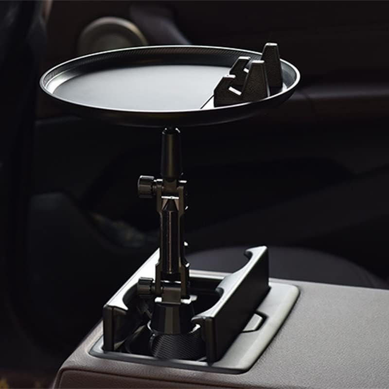 Made of ABS material, wear-resistant, strong and .Adjustable: Our cup holder table adopts 360° rotation function and articulated arm design, which allows you to adjust the table to the position.Multifunctional: Our car cup holder tray can not only be used to place drinks and food, but also can be used as a mobile phone holder, which is very suitable for enjoying performances while eating.Save space: Our car cup holder tray will add practicality to your vehicle while keeping it organized.No tools required, easy to install, saving time and effort. Our cup holder tray is suitable for most vehicles.Package Includes:1 x Cup Holder TrayPlease note:Before placing an order, please confirm whether your model matches the compatibility. If in doubt, please leave a message about your car Model-Year-Engine-Trim (Would better a picture).Various Using Occasions: varying for using mobile phone to watch movies & enjoy music in the bedroom, headboard,bathroom,desk, kitchen, gym and office, free your hands.Designed with a non-slip silicone base, the holder will not scratch the surface of your furniture.