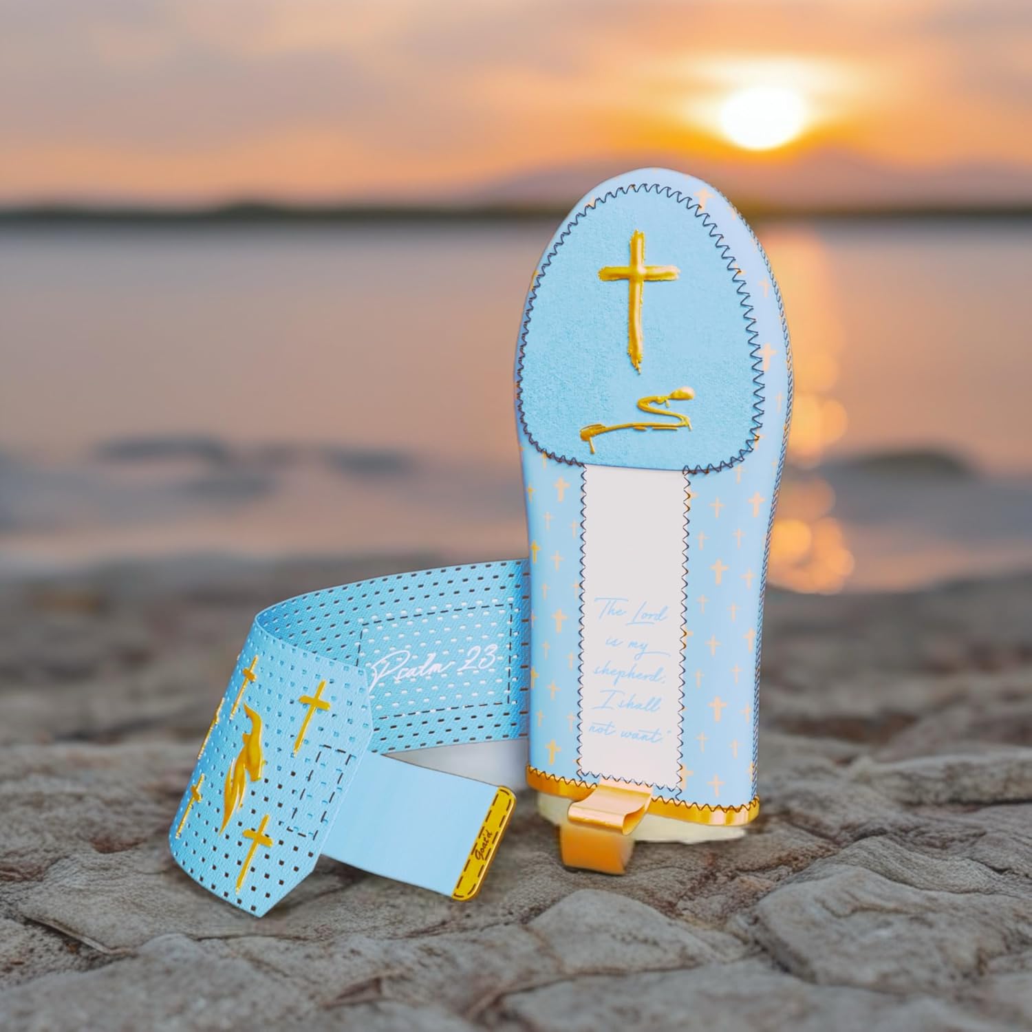 Psalm 23 Sliding Mitt – Baby Blue, Cream, and Gold The Goat’d Psalm 23 Sliding Mitt is crafted for players who want elite protection and gear with purpose. Designed in calm water blues, cream details, and shimmering gold accents, this mitt reflects the peace and confidence found in Psalm 23. "He restores my soul." This mitt represents more than performance. It is a reminder to play with faith, resilience, and purpose every time you take the field. Key Features: ✔ Premium Impact Shielding: Reinforced protection built to guard your fingers and hand on every slide. ✔ Secure Fit: Adjustable strap that locks in without restricting mobility. ✔ Breathable Interior: Designed to stay cool, comfortable, and game-ready. ✔ Standard Size: Best for ages 11 and up. ✔ Limited Quantities: Produced in a small batch and never re-made. Purpose Beyond the Field Part of every purchase helps support children in need through our ongoing charitable mission. Add to Cart and play with confidence. Safety Notice: This equipment is designed to help reduce the risk or severity of injury but cannot guarantee protection. Proper use does not eliminate the inherent risks of sports.