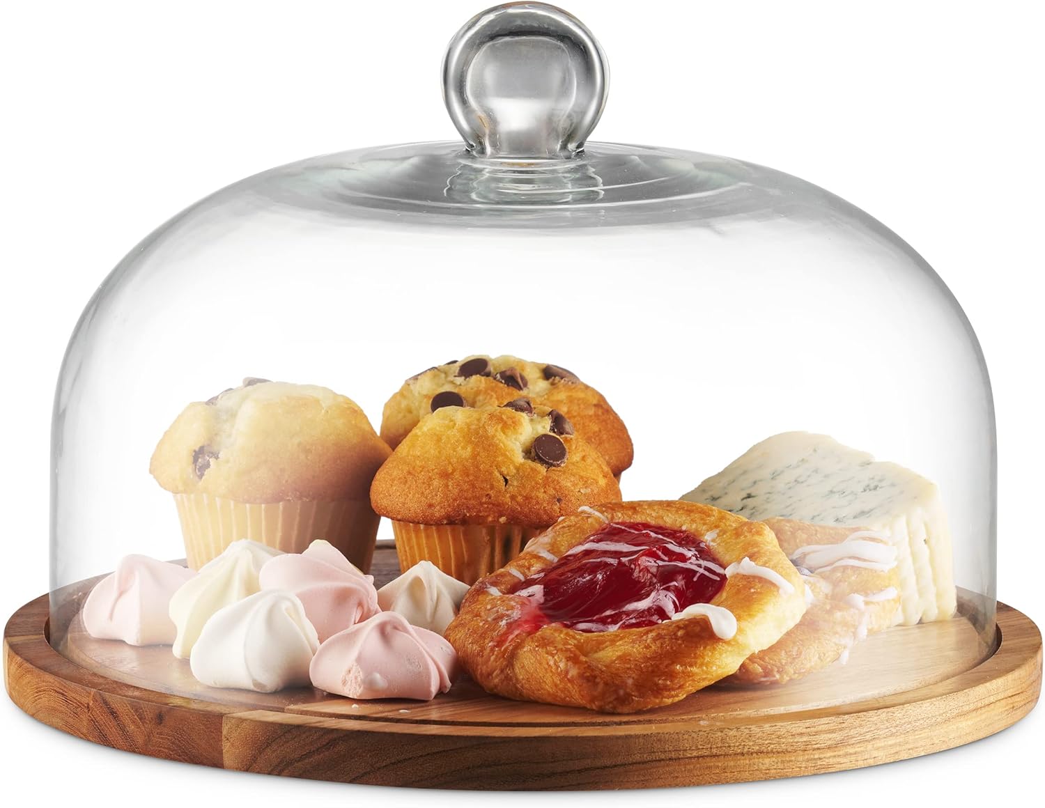 Godinger Cake Stand with Dome, 2in1 Wooden Cake Plate Serving Tray with Glass Dome, Cheese Board, Home Decor Housewarming Gifts