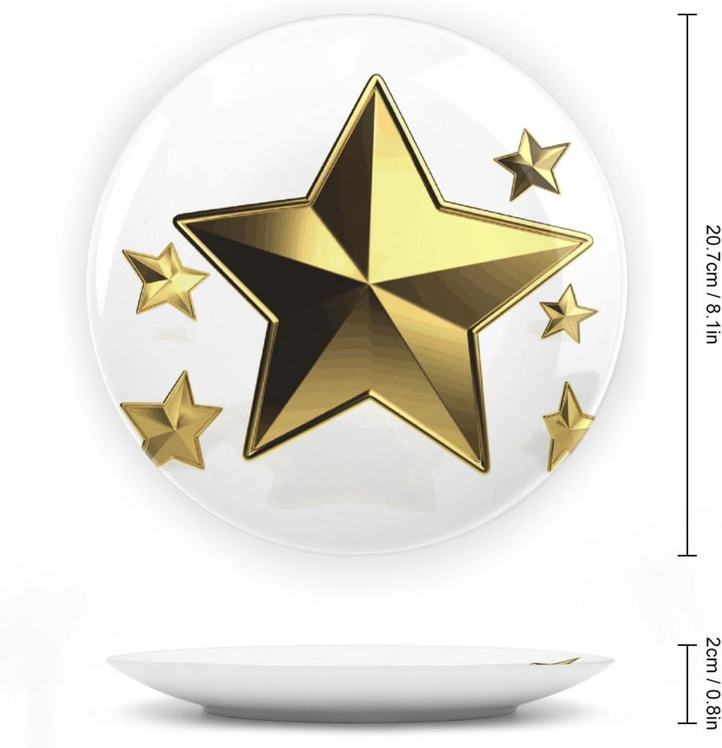 Our versatile ceramic Gold Star plates are made of smooth ceramic material. The lightweight bone china plates can be easily placed anywhere you like, showcasing their decorative charm.This bone china dessert plate is available in four sizes: 6 inches, 7 inches, 8 inches, and 10 inches, making it an ideal choice for display items.Personalized decorative plates, perfect for displaying handicrafts, are an ideal choice for home décor. This vertical ceramic plate makes a wonderful gift for housewarmings, anniversaries, weddings, birthdays, Thanksgiving, New Year's, or any holiday.This French country-style ceramic plate is suitable for decorating or using in living rooms, offices, hallways, dining rooms, entrances, hotels, holiday homes, and other places.