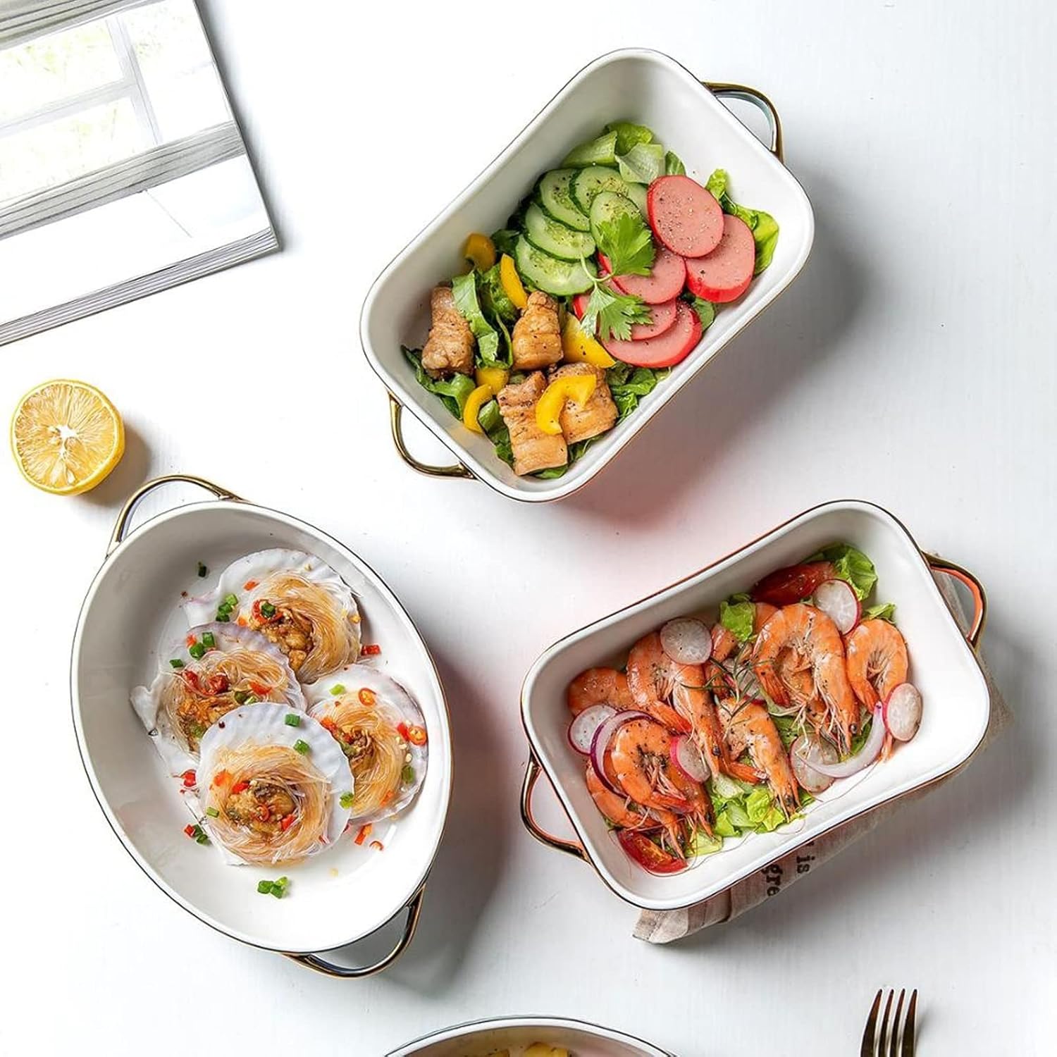 Golden Side Baking Tray Rectangle Oval Ceramic Glaze Baking Pan Barbecue Salad Plate Oven Kitchen Bableware Baking Dish Individual Lasagne Pan Deep (Color : 1) (F)